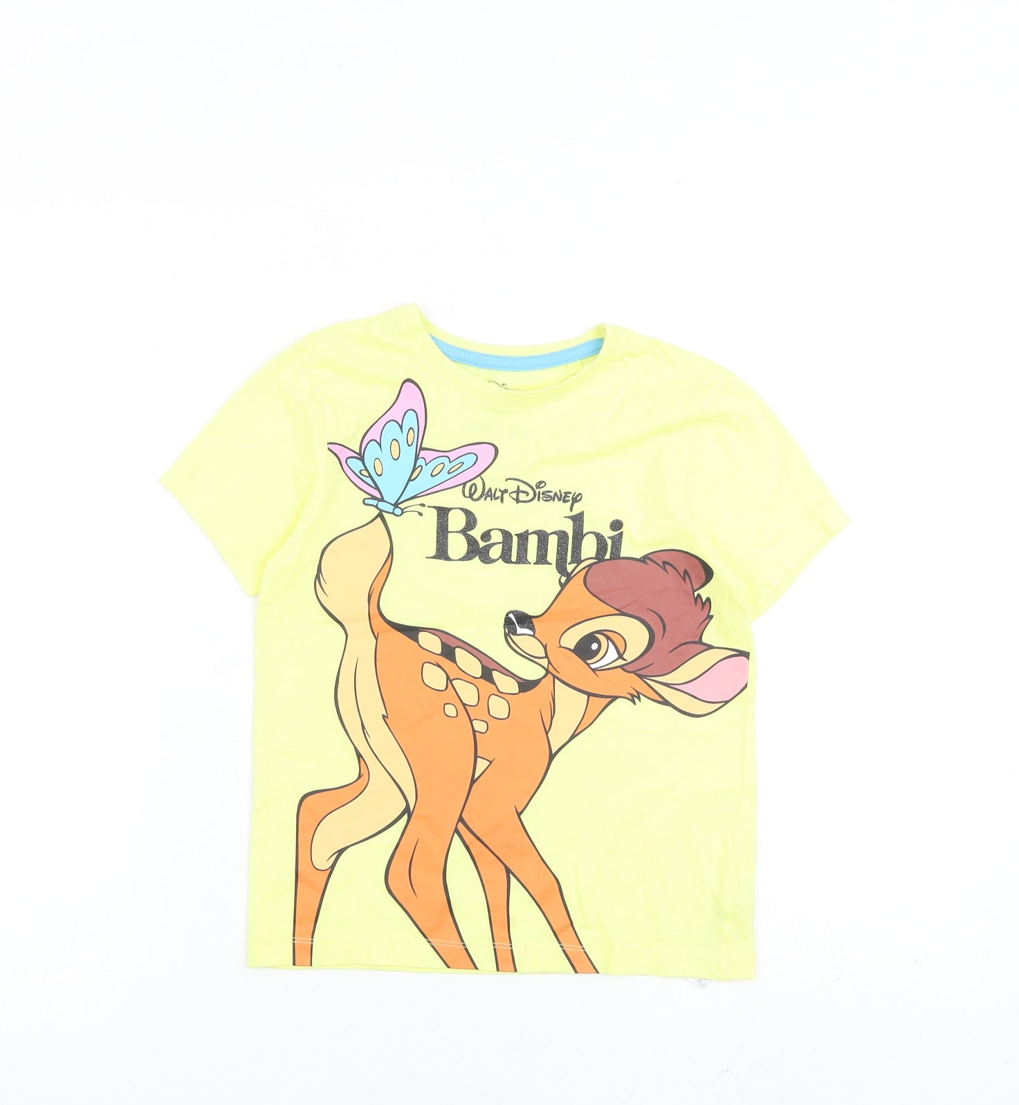Girls Yellow Cotton Basic T-Shirt Size 7-8 Years Round Neck Pullover