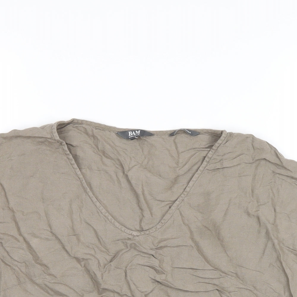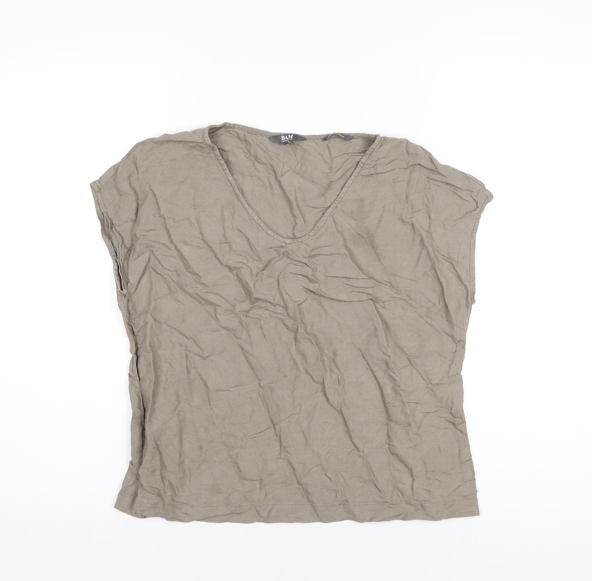 Womens Brown Linen Basic T-Shirt Size 8 V-Neck