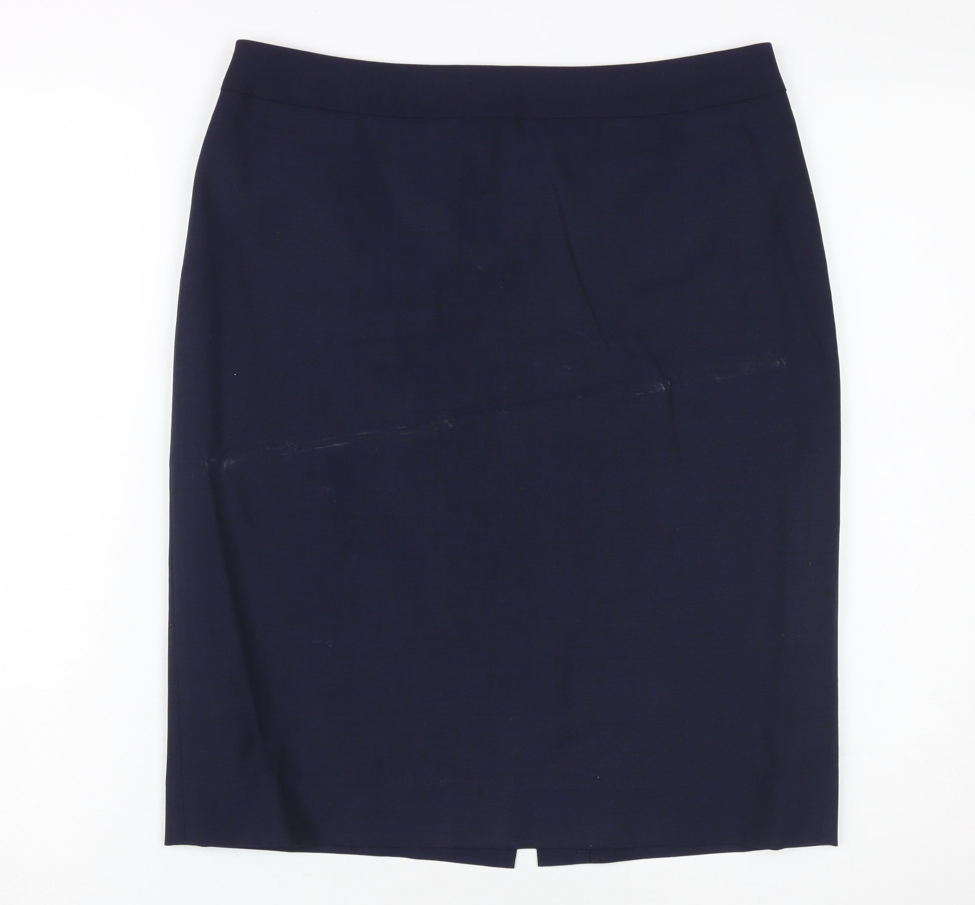 This elegant Banana Republic pencil skirt is perfect for elevating your business or casual wardrobe. Crafted for women, this knee-length skirt features a classic blue hue that seamlessly complements any ensemble. Constructed from a quality blend of 95% wool and 5% elastane, it provides a comfortable and refined knit fabric feel with a hint of stretch.The skirt is designed to fit regular sizes and is equipped with a practical zip closure at the back. Its lined interior ensures comfort and smooth wear throughout the day. The mid-rise waist enhances the silhouette, making it a versatile piece suitable for various occasions including business meetings, casual outings, or more formal settings.While the skirt is in excellent condition with minimal signs of wear, it is recommended for dry cleaning to maintain its luxurious texture and appearance. This versatile piece is ideal for all seasons, allowing you to adapt your style effortlessly to changing weather.Enhance your wardrobe with this timeless piece from Banana Republic and enjoy the balance of comfort, style, and quality that it offers.