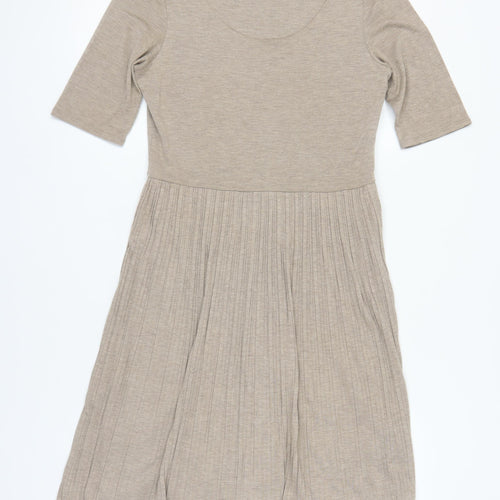 La Redoute Womens Beige Fair Isle Cotton Jumper Dress Size 8 Round Neck Pullover