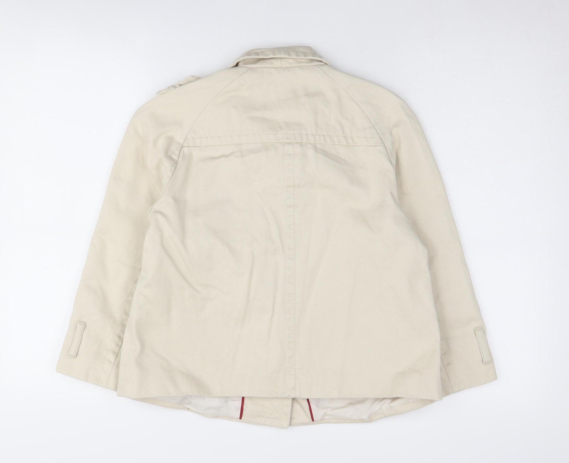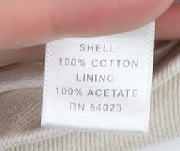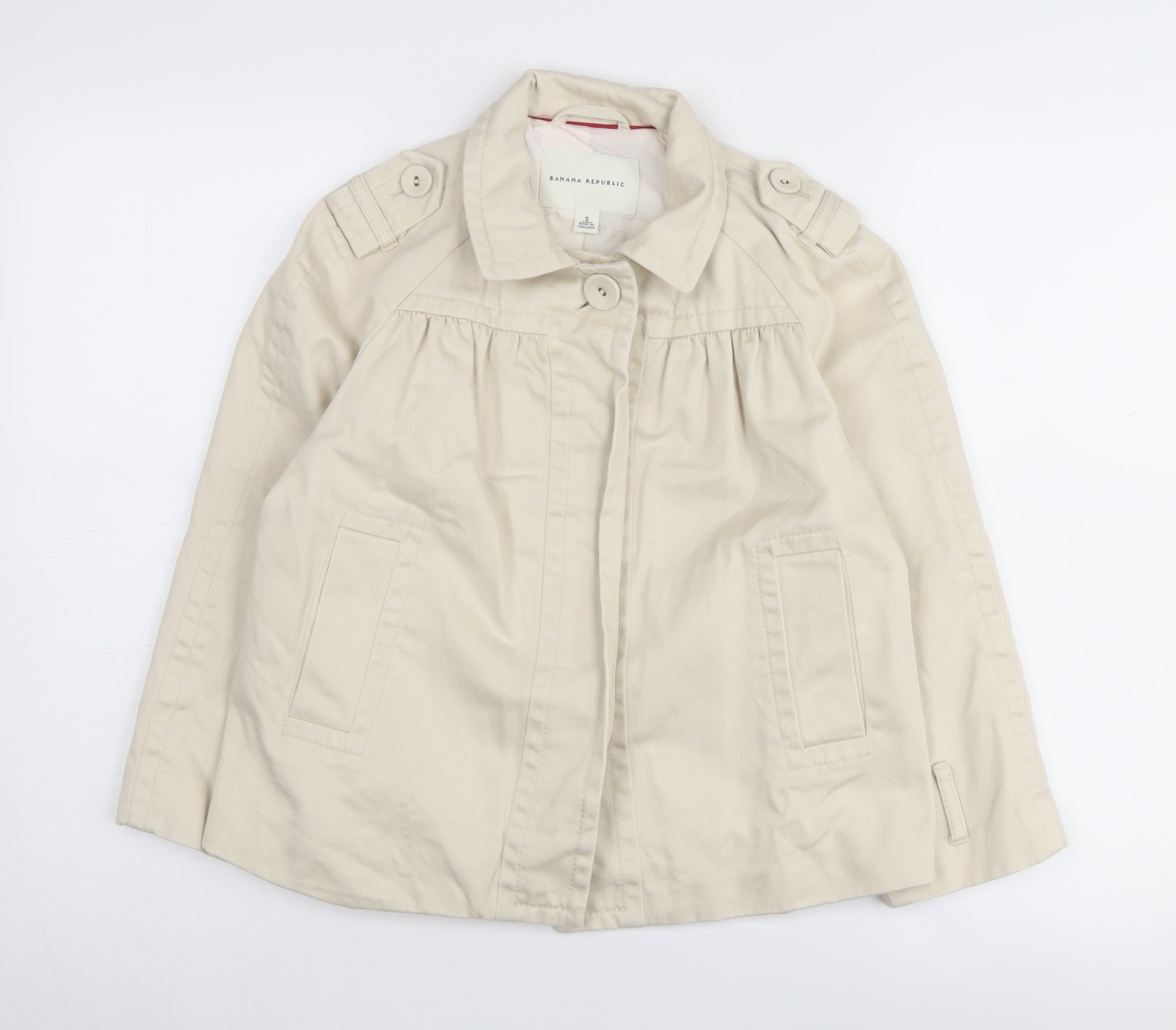Elevate your wardrobe with this exquisite Banana Republic women's jacket. Crafted in a stunning beige, this jacket is perfect for those who appreciate classic style with a contemporary edge. Made from 100% cotton, it offers comfort and durability, while the acetate lining ensures a smooth fit. Ideal for casual occasions, this short, button-up jacket features a sleek collared design. Whether you're stepping out for a coffee date or heading to a casual gathering, this jacket will make you stand out with its timeless appeal. The long sleeves provide a comfortable fit, and the versatile style works well across spring and autumn seasons. Despite a slight mark on the front, this piece is in very good condition, promising style and functionality. Embrace understated elegance and make this essential piece a part of your collection today.