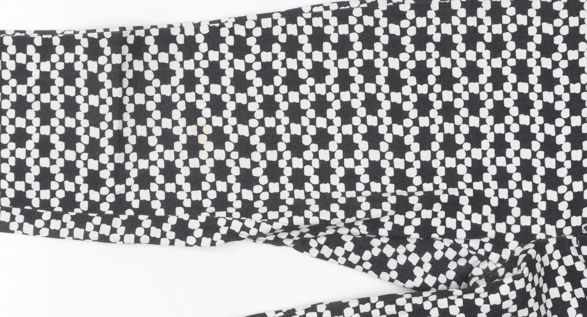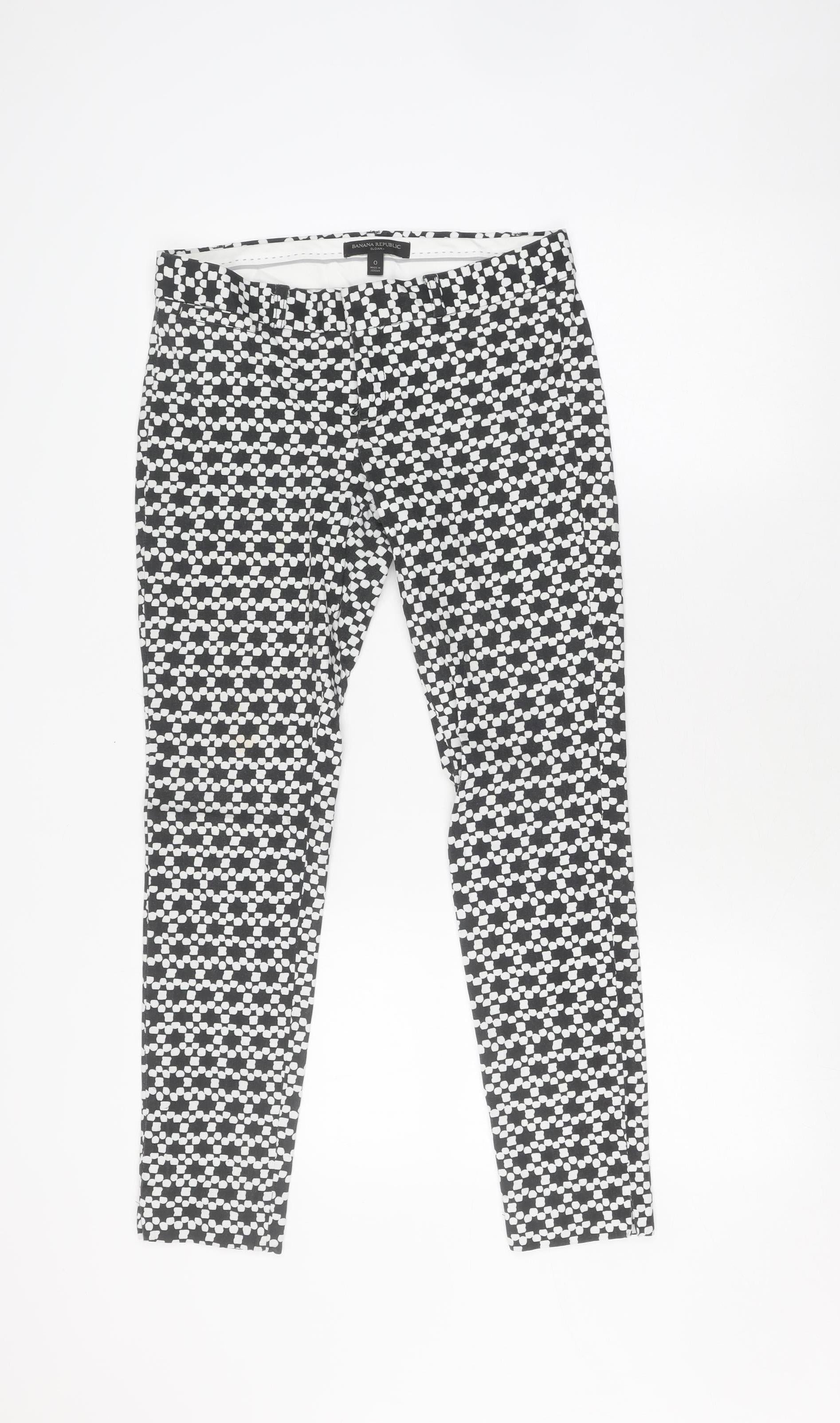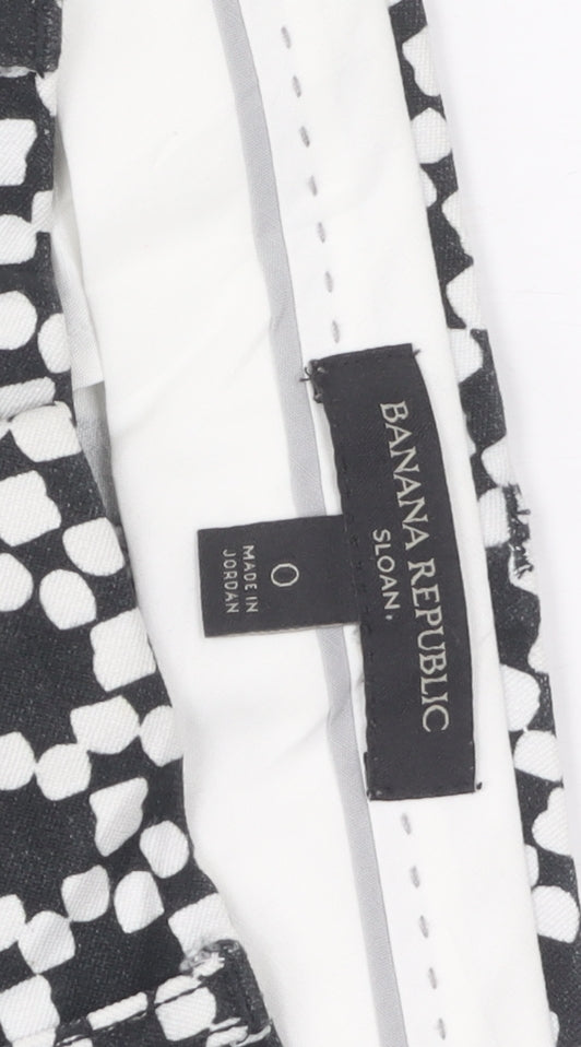 Step out in style with these chic Banana Republic women's trousers that effortlessly combine comfort and elegance. Made from a quality blend of 56% cotton and 3% elastane, these trousers offer stretch and comfort, making them perfect for all-day wear. The elegant geometric pattern in black and white is a versatile addition to your wardrobe, suitable for casual outings or an evening cocktail party. Designed in a slim fit with a flattering mid-rise, these trousers are perfect for defining your silhouette. Ideal for the spring, summer, and autumn seasons, they can easily transition from day to night. These trousers feature a classic flat front and are machine washable for easy care. Despite being pre-loved, they are in excellent condition with only minor signs of wear, making them a smart and sustainable fashion choice. Add a touch of sophistication to your everyday look with these stylish Banana Republic trousers.