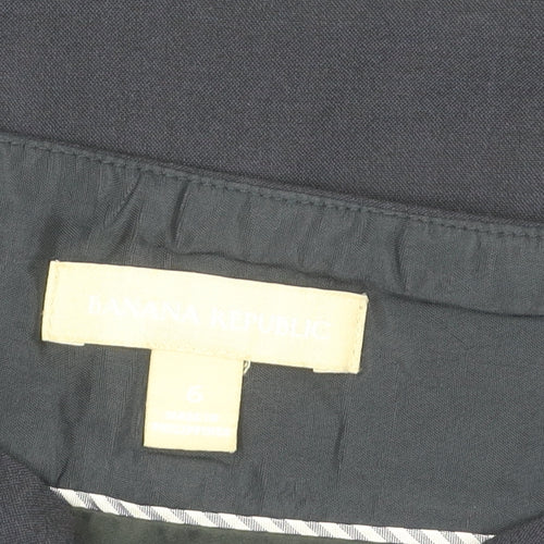 Elevate your professional wardrobe with this sleek Banana Republic women's pencil skirt. Crafted in a sophisticated black hue, this elegant piece is perfect for business settings. It is designed for a mid-rise fit and falls gracefully to the knee, offering a classic and flattering silhouette. Constructed from a blend of 95% wool and 5% elastane, this skirt ensures comfort and a slight stretch for ease of movement. The wool material provides warmth, making it ideal for autumn and winter seasons. The skirt features a discreet zip closure, maintaining a streamlined look without additional accents. Specifically tailored for regular sizing, this skirt comes in a size 6, offering a perfect fit for a polished appearance. It carries no pattern, adding to its versatile and timeless appeal. Garment care is dry clean only, ensuring its longevity and preservation of quality. Suitable for a range of business occasions, this pencil skirt can be paired with a blouse and tailored jacket for a complete professional ensemble. Despite showing slight wear, the skirt remains in excellent condition with no significant flaws, ready to be a mainstay in your workwear collection.