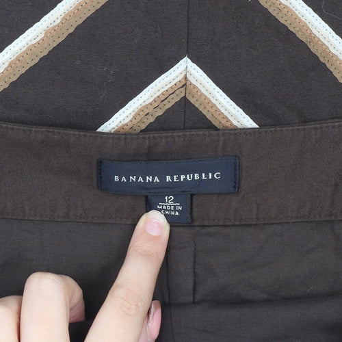 Elevate your wardrobe with this elegant Banana Republic brown A-line skirt that is perfect for any occasion. Its classic geometric pattern adds a sophisticated touch, making it ideal for both casual and dressy settings. Crafted from 100% cotton, this high-quality skirt provides comfort and durability. With a size of 12 in UK's regular sizing, it ensures a flattering fit for women. Pair this versatile skirt with your favourite top and accessories for a chic ensemble that is both stylish and timeless. An essential addition for anyone looking to enhance their fashion collection with an easy-to-wear skirt.