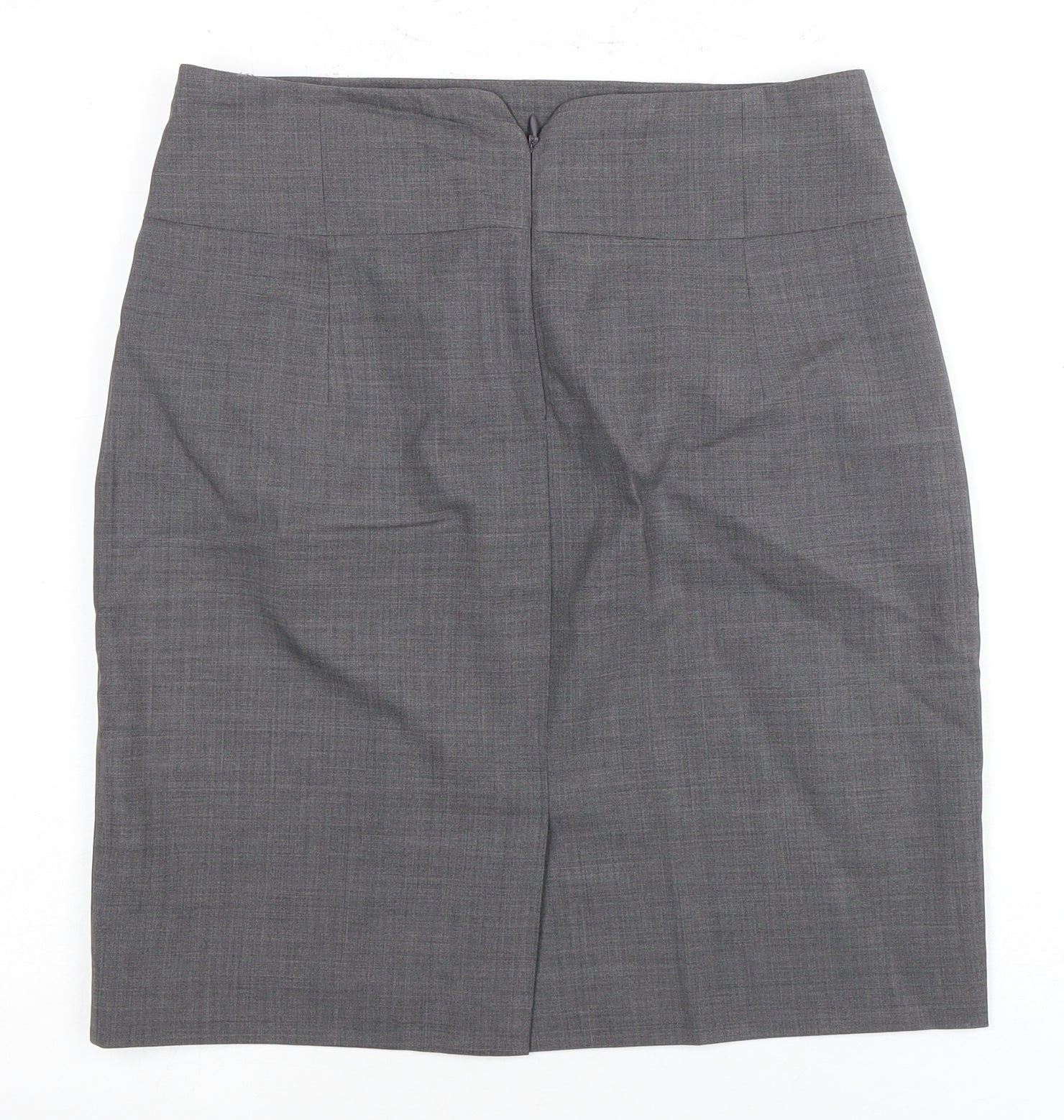 Elevate your wardrobe with this Banana Republic Women's Pencil Skirt in a sophisticated grey hue. Tailored for the contemporary woman, this knee-length skirt in size 16 Petite is perfect for both business and casual occasions. Crafted from a premium blend of 69% polyester, 29% wool, and 2% elastane, it offers a comfortable fit while maintaining a polished appearance. The high-rise design flatters your silhouette, complemented by a sleek zip closure at the back. Fully lined for added comfort, it’s a versatile addition to any wardrobe, ideal for all seasons. The minimalist pattern allows for endless styling possibilities, making it a staple piece that pairs effortlessly with blouses and blazers. Designed for those who value both style and practicality, this skirt requires dry clean only care, ensuring it remains in excellent condition. Despite minor wear, it retains a well-maintained look that's sure to make a statement in any setting.