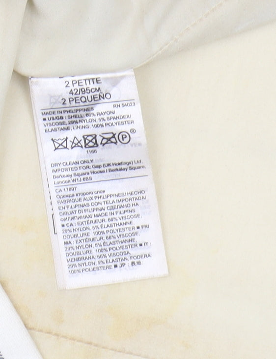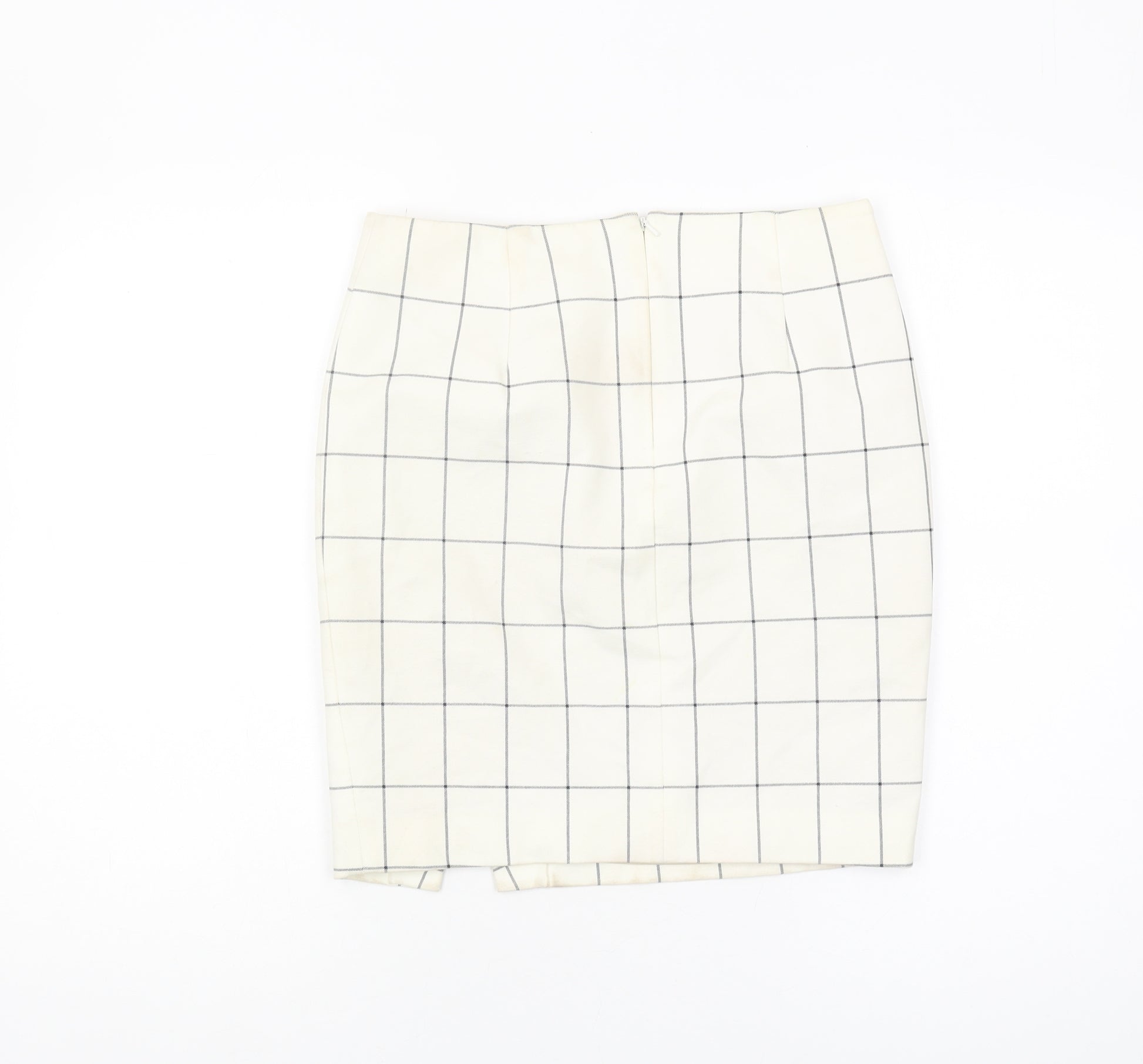 Elevate your wardrobe with this elegant yet versatile Banana Republic pencil skirt. Designed in a sophisticated knee-length cut, this stylish skirt features an eye-catching check pattern in a chic ivory hue, perfect for making a subtle statement. Crafted from a high-quality blend of rayon, nylon, and elastane, it offers a comfortable fit with just the right amount of stretch. The mid-rise design enhances your silhouette, making it a go-to piece for both business and casual occasions. A practical zip closure ensures ease of wear, while the subtle slit adds a touch of femininity. Whether paired with a classic blouse for a polished office look or a casual tee for a relaxed day out, this skirt is a must-have in every woman's wardrobe. Enjoy the perfect blend of fashion and function with an item that embodies effortless elegance. Perfect for all seasons, this skirt promises to be a timeless addition to your closet.