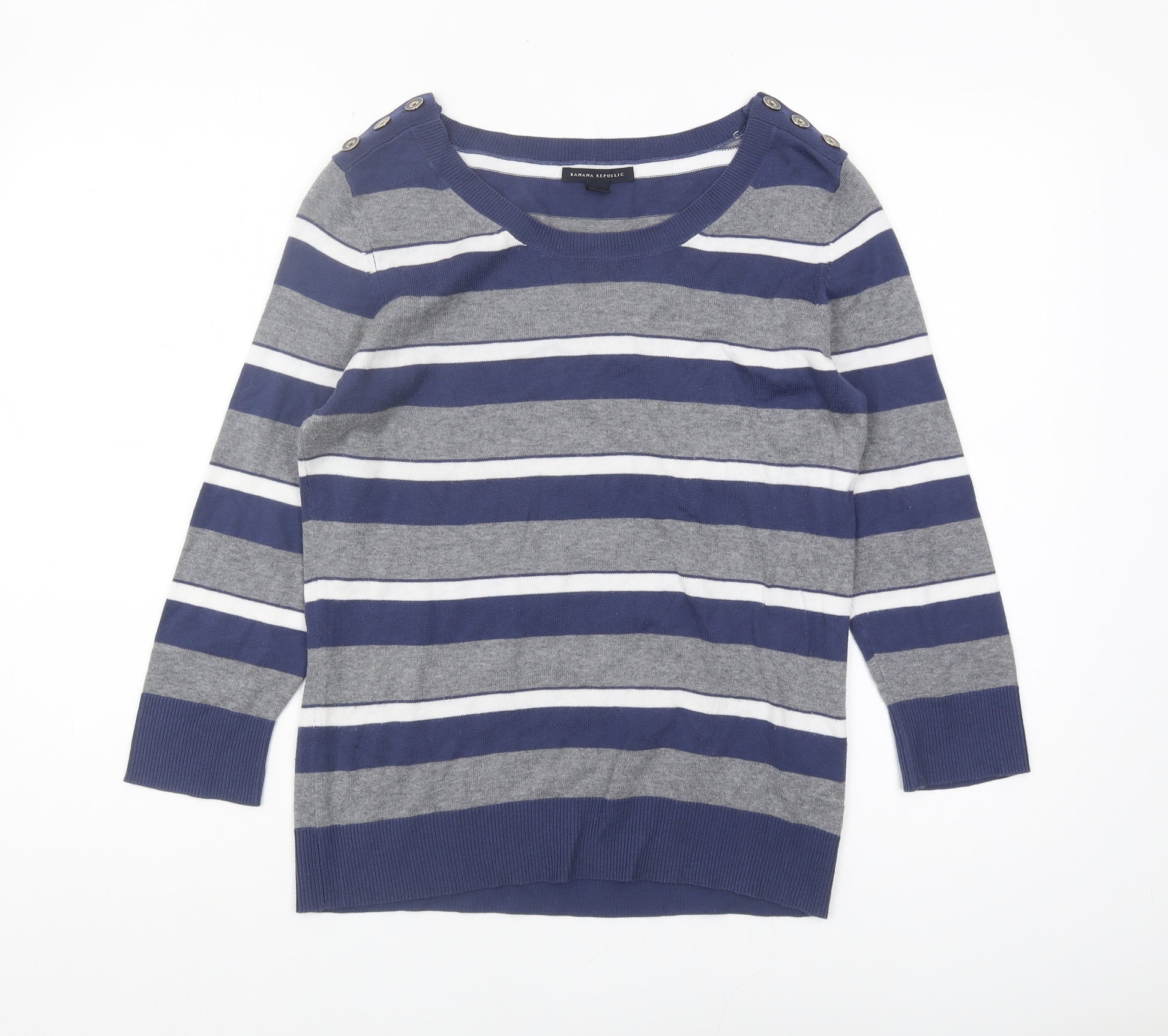 Elevate your wardrobe with this stylish Banana Republic Women's Jumper. Crafted from a soft and durable blend of 60% Cotton and 40% Polyester, this pullover is perfect for all-day wear. The striking multicoloured striped pattern adds a touch of elegance, making it ideal for both casual outings and semi-formal events. The boat neckline enhances its classic appeal, while the 3/4 sleeves provide a comfortable fit. With button accents on the shoulders, this jumper offers a unique charm that's sure to catch the eye. Despite being in excellent condition with no visible wear or defects, this piece promises to be a staple in your seasonal rotation. Easy to pair with jeans or skirts, this Banana Republic jumper is more than just a wardrobe addition; it's a style statement.