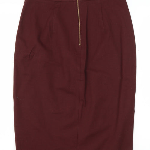 Elevate your wardrobe with this classic Banana Republic women's pencil skirt. In a striking red hue, this skirt is a must-have for anyone wanting to make a statement in sophistication. Crafted from a comfortable blend of cotton and elastane, it ensures a snug yet flexible fit, keeping you at ease throughout your day. The elegant straight and pencil style is perfect for both business and casual settings, making it a versatile addition to your clothing collection. Featuring a convenient zip closure at the back, this skirt not only offers a seamless silhouette but also ultimate comfort and ease of wear. Whether paired with a crisp blouse for the office or a casual tee for a more relaxed feel, this skirt promises to be a go-to choice for every occasion. Though it lacks original sales tags, it is in excellent condition, showing only minor signs of wear. Don't miss the opportunity to own this timeless piece at an incredible value. Add charm and elegance to your style with Banana Republic's exquisite red pencil skirt.
