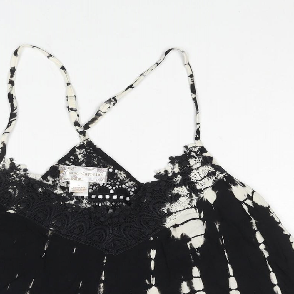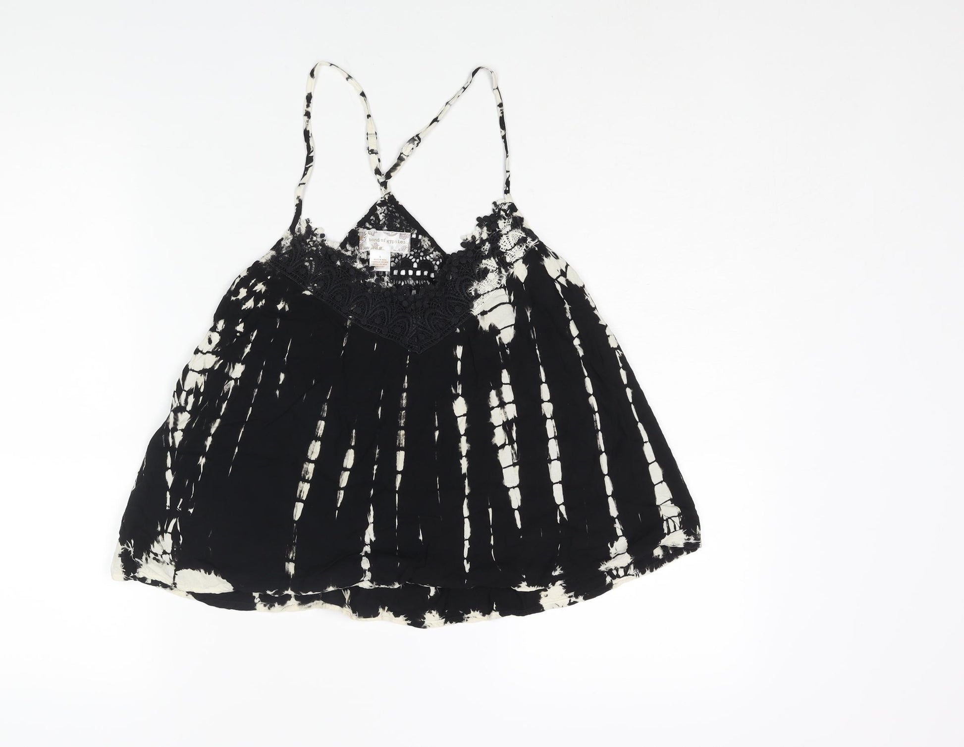 Womens Black Geometric Polyester Camisole Blouse Size S V-Neck - Tie Dye Lace Trim