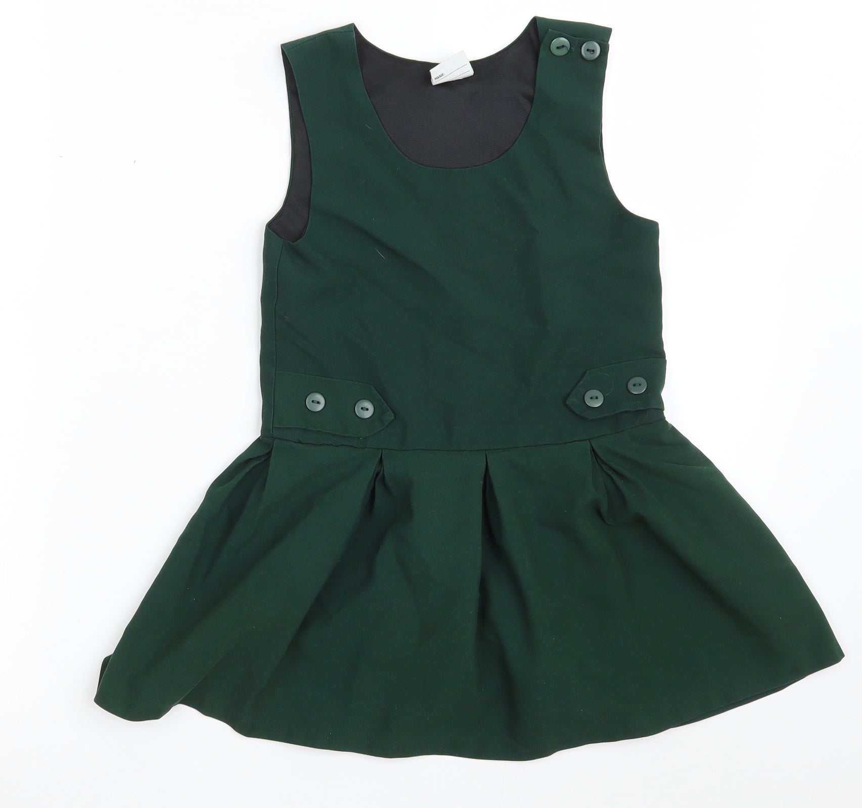 Girls Green Polyester A-Line Size 5-6 Years Scoop Neck Button