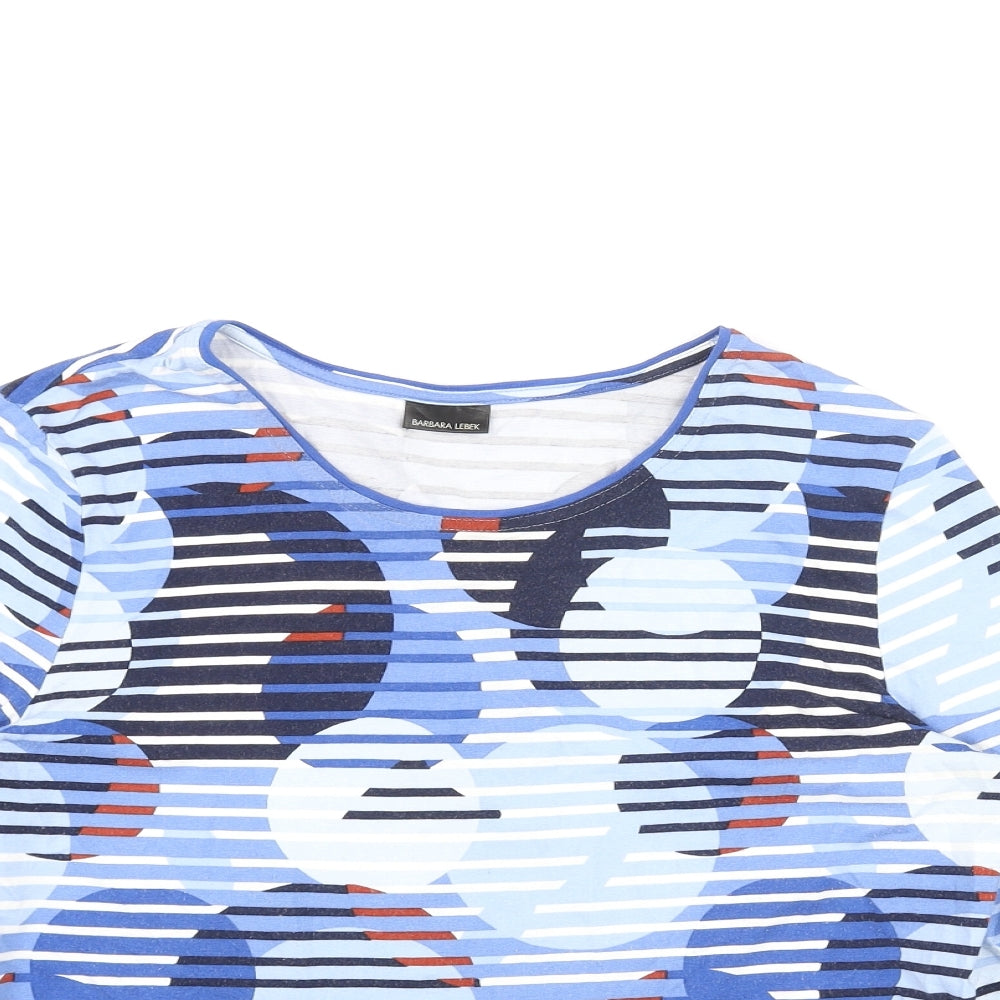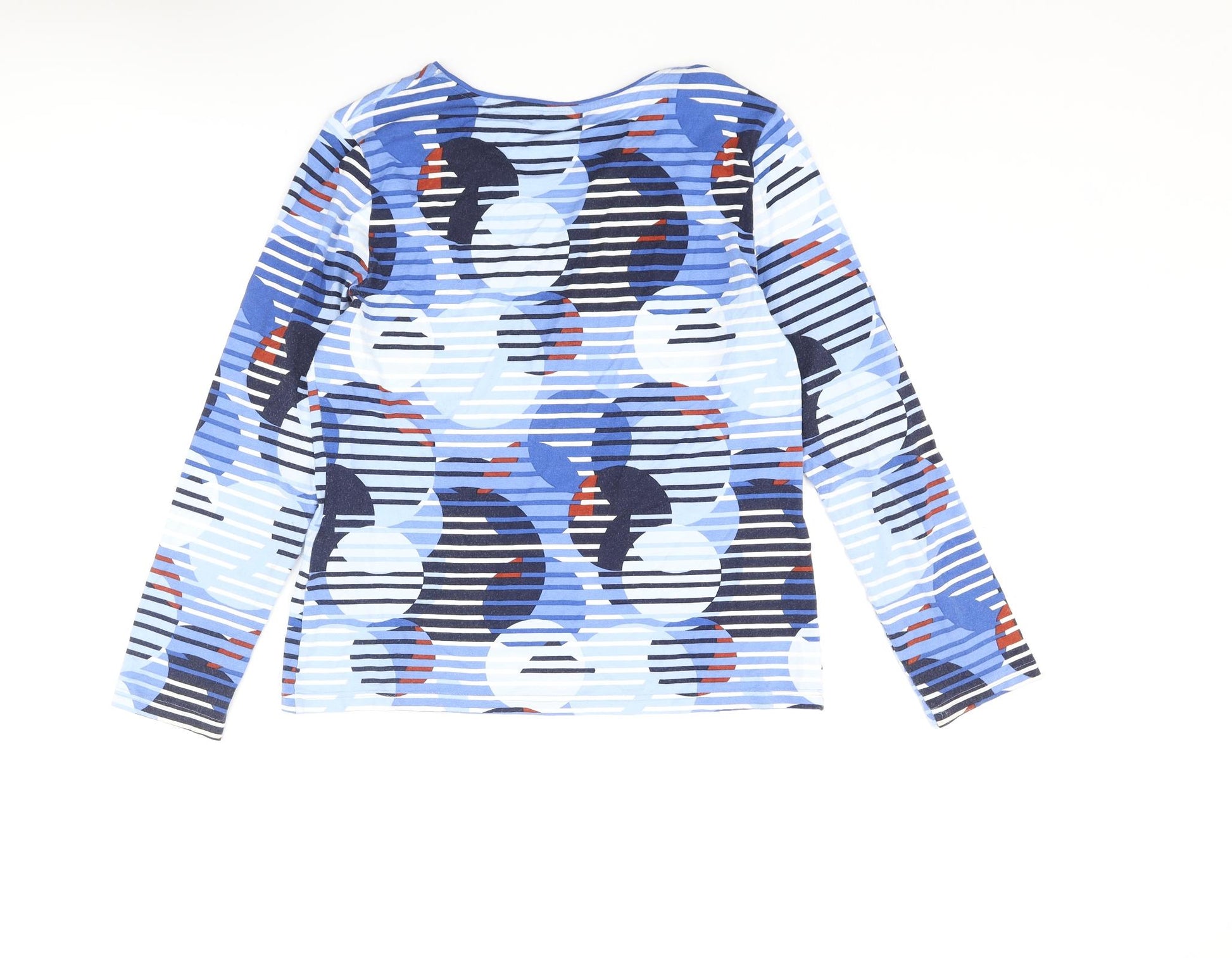 Womens Blue Geometric Viscose Basic T-Shirt Size 12 Round Neck