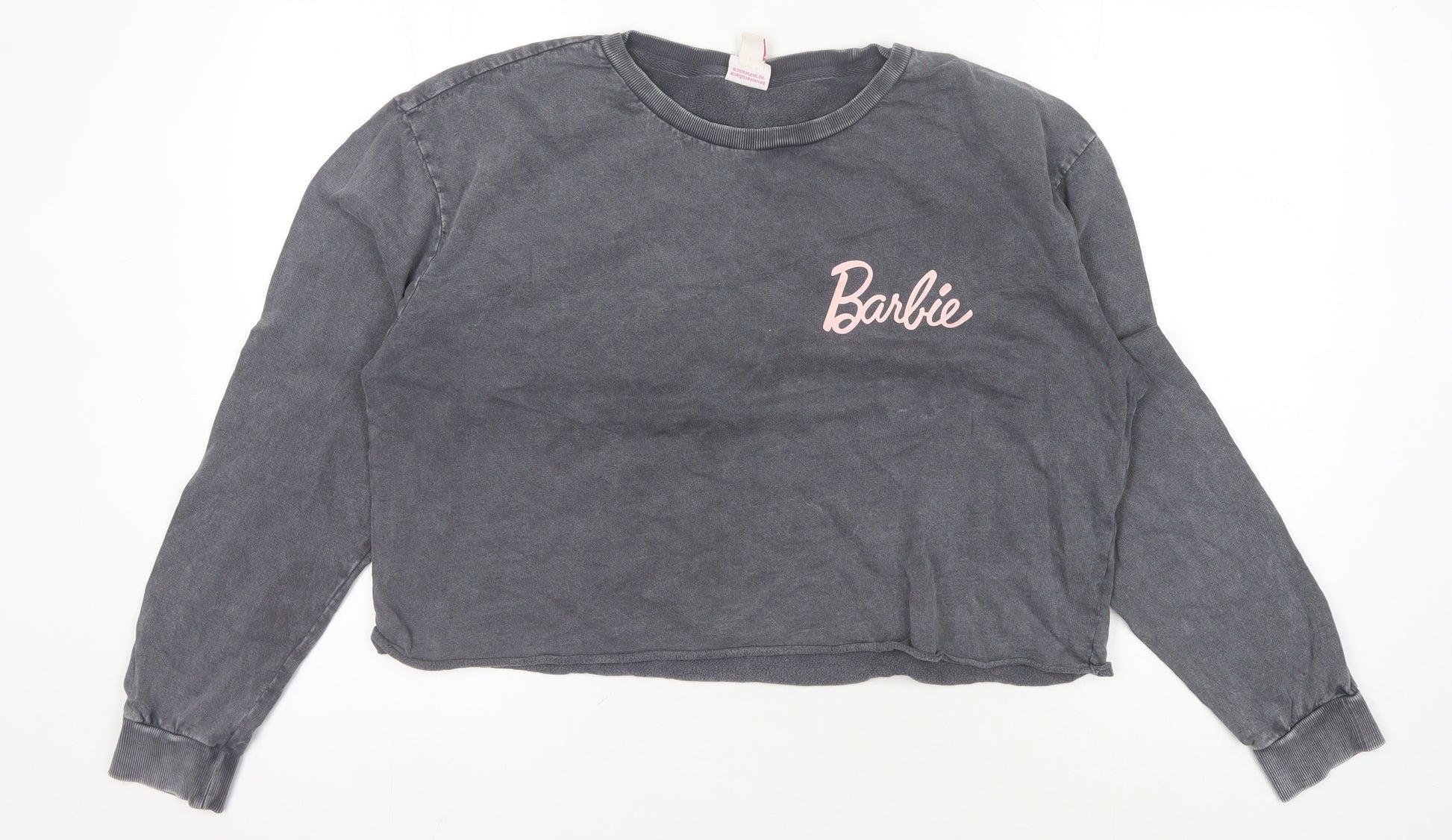 This Barbie women's pullover sweatshirt in a versatile grey shade is an ideal choice for those who like to merge comfort with style. Tailored from 100% cotton jersey fabric, it promises softness and breathability, making it perfect for all seasons. The sweatshirt features a classic crew neck and long sleeves, ensuring a relaxed fit that is ideal for layering or wearing alone. Accentuated with the iconic Barbie logo, it adds a touch of playful charm to your casual wardrobe. Perfect for women who adore the Barbie character, this sweatshirt aligns with a cartoon theme, making it a delightful option for casual outings or lounging at home. Sized as a regular fit UK 12, it caters well to everyday comfort. Easily maintainable, this machine washable top is an excellent pick for those who appreciate low-maintenance fashion. Please note, despite its excellent condition, there are slight signs of wear, but no brand sales tags are included. Whether you're a nostalgic fan or simply love the vibe, this sweatshirt is a great addition, offering a blend of comfort, theme, and versatile style.