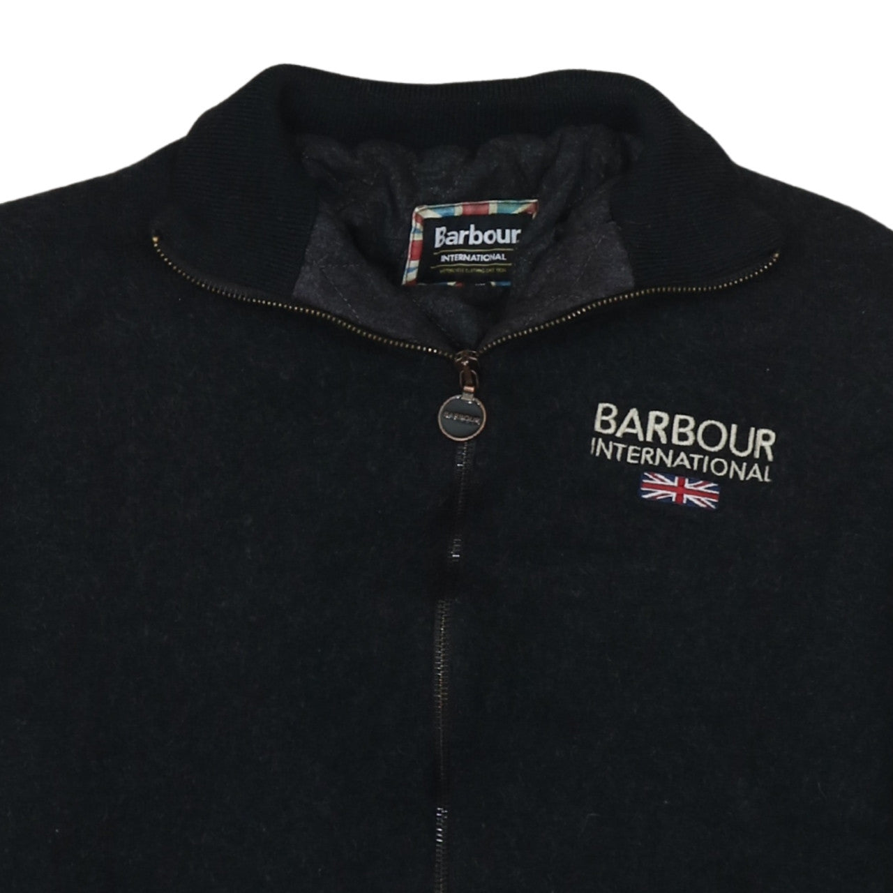 This Barbour International Men's Black Wool Bomber Jacket in size XL offers a timeless and refined look supported by Barbour's iconic craftsmanship. Designed for both style and practicality, this jacket features a soft wool-polyester outer shell that provides warmth and durability for the colder months. The classic black colour ensures versatile wear, making it easy to pair with jeans, trousers, or chinos for both casual and smarter outfits. A full zip closure with a branded Barbour pull and two front pockets adds convenience and an understated touch of luxury. The interior is lined with polyester for additional comfort and insulation, ideal for autumn and winter wear. The ribbed collar, cuffs, and hem give this bomber jacket a secure fit while adding to its traditional silhouette. The Barbour International embroidery with a Union Jack accent on the chest celebrates the brand’s heritage rooted in British motorcycle clothing since 1936. The jacket’s regular fit ensures freedom of movement while maintaining a structured shape. Perfect for workwear, travel, or casual outings, it embodies the rugged yet sophisticated charm Barbour is known for. In excellent pre-owned condition, showing minimal signs of wear, this piece retains its shape and finish beautifully. Whether you’re heading into town or taking a countryside ride, this Barbour International bomber jacket delivers warmth, comfort, and lasting quality that stands the test of time. A fine addition to any discerning gentleman’s outerwear collection.