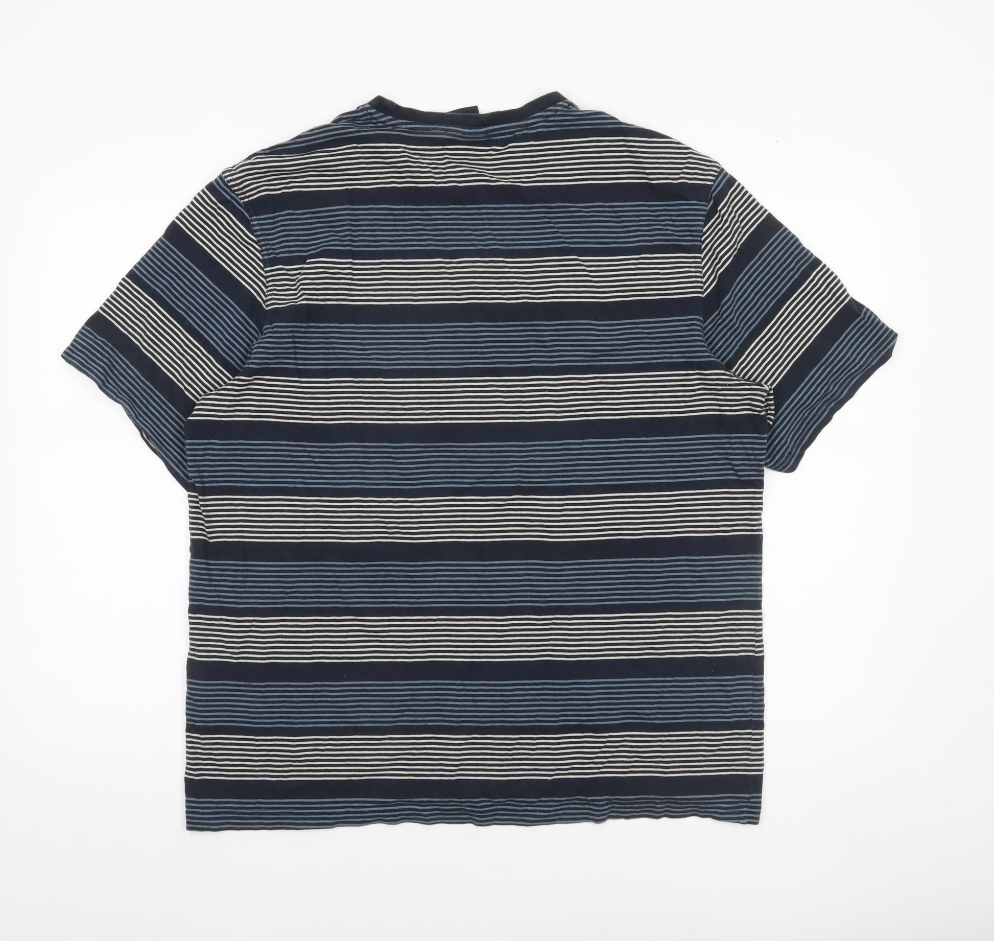 Men's Blue Striped Relaxed Fit Cotton T-Shirt L