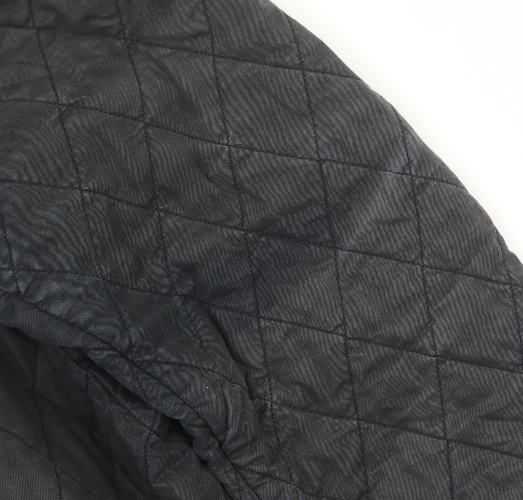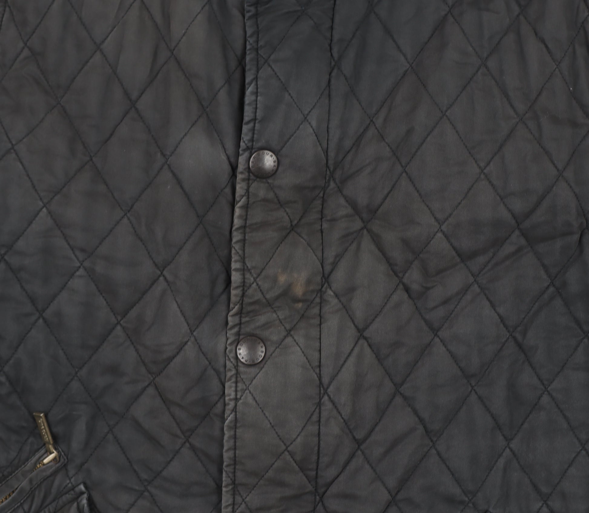 Discover timeless British heritage with this classic Barbour men's quilted jacket in sleek black. Crafted from a durable polyamide and polyester outer shell, this jacket combines traditional styling with reliable performance. The diamond-quilted design is both stylish and practical, providing an extra layer of warmth and comfort without bulk. Lined in a soft cotton and polyester blend featuring Barbour’s signature tartan check, it ensures comfort during brisk days while maintaining a refined country aesthetic. Designed for versatility, this mid-length jacket is ideal for outdoor wear, weekend walks, or everyday errands. The front features a full zip fastening complemented by snap buttons for a secure closure, while two angled zip-and-button front pockets allow space for essentials or to warm your hands. With its stand-up collar and lightweight padded structure, it is perfect for the autumn and winter seasons, offering warmth and wind protection in one dependable layer. Suited to men who appreciate classic outerwear with character, it blends functionality with unmistakable British charm. Its water-resistant exterior helps withstand light rain, and Barbour’s craftsmanship ensures longevity over many seasons. Ideal for casual wear, travel, or outdoor pursuits, this jacket pairs perfectly with jeans and boots for a smart-casual finish. The condition is very good, showing minimal signs of prior use with a slight mark on the front panel that does not detract from its overall appeal. The Barbour quilted jacket remains a wardrobe essential, delivering comfort, warmth, and sophistication for any occasion. Ideal for the modern gentleman seeking practical style steeped in tradition, this piece offers both form and resilience — a true classic that endures time and trend alike. Treat yourself to a jacket that reflects authentic craftsmanship, unrivalled versatility, and understated elegance.