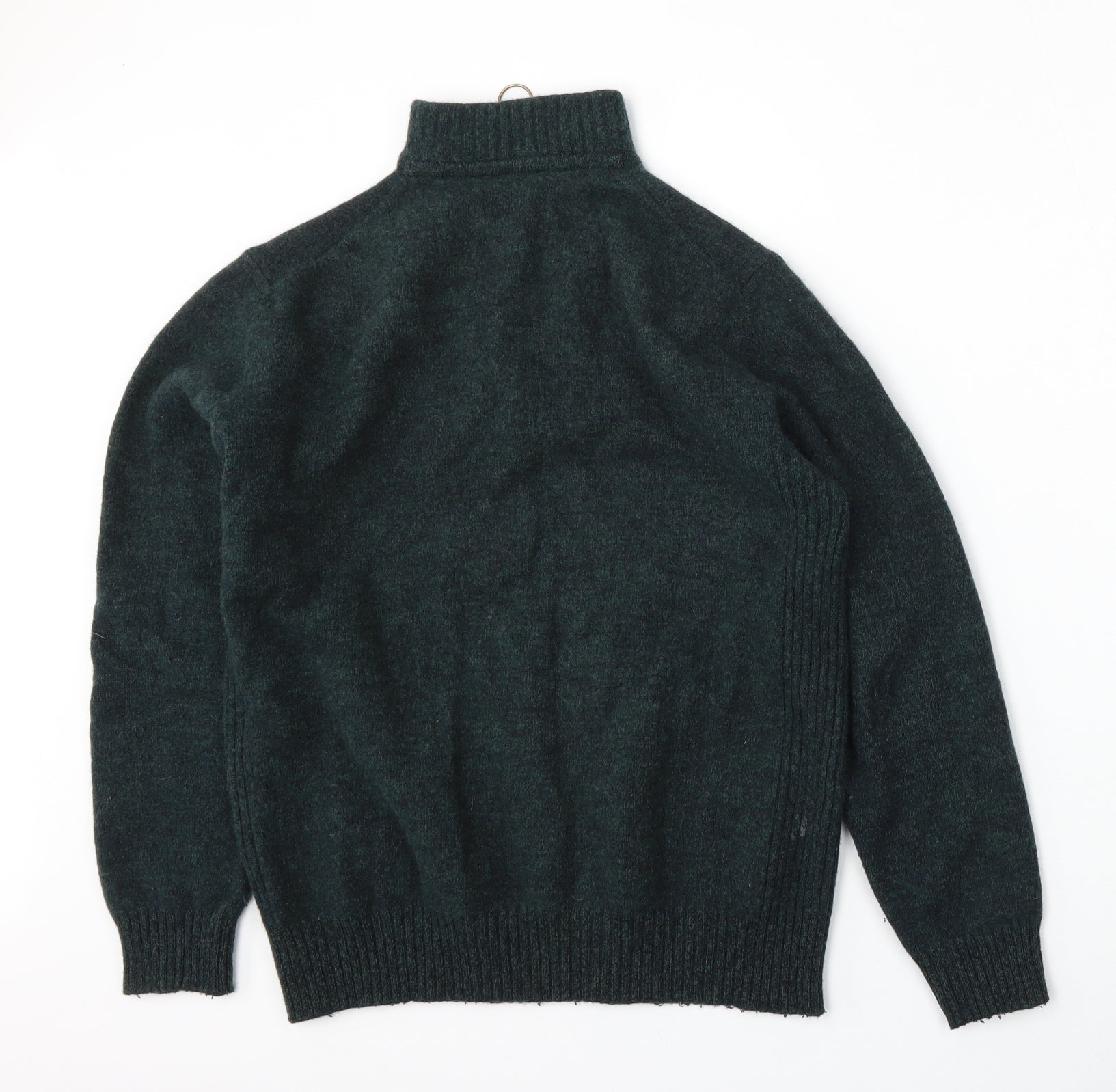 Mens Green Mock Neck Wool Pullover Jumper Size L