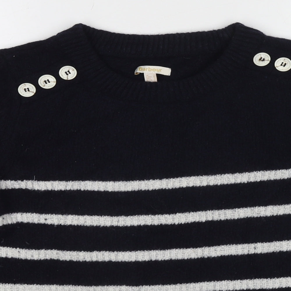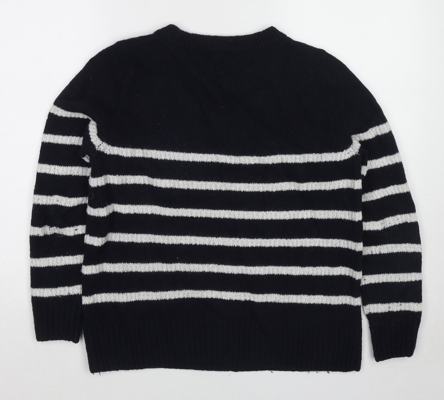 Womens Blue Round Neck Striped Wool Pullover Jumper Size 14