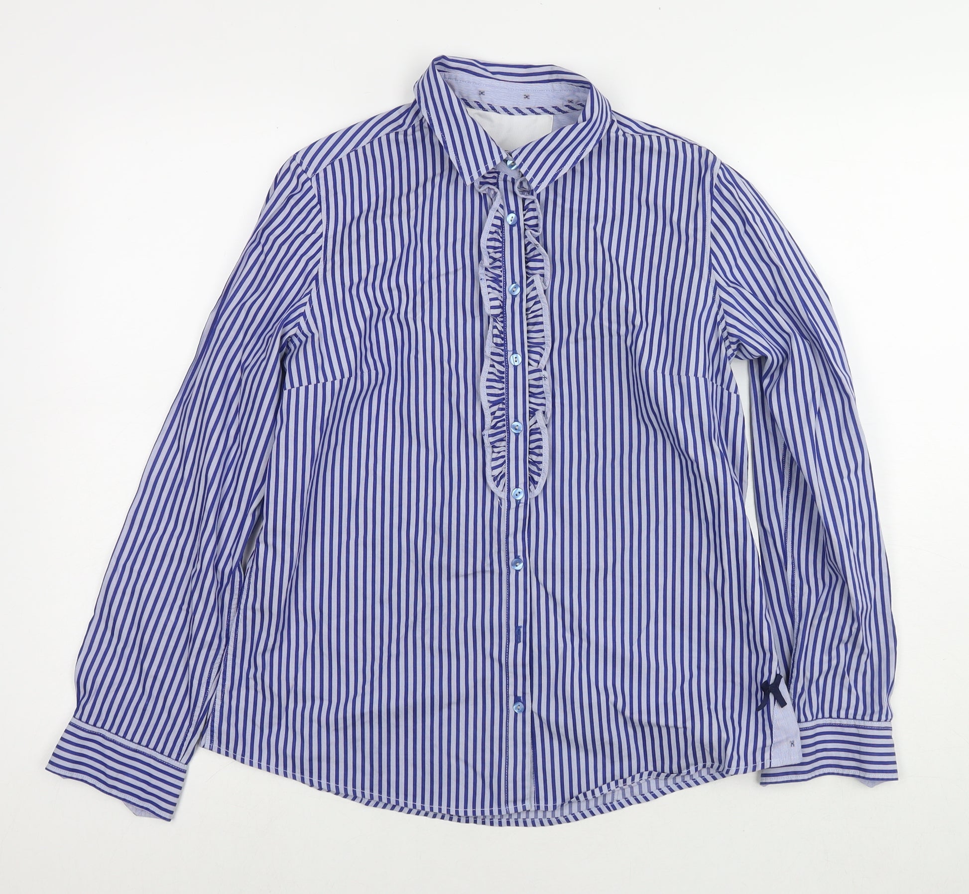 White Stuff Women's Blue Striped Linen Button-Up Shirt UK 10