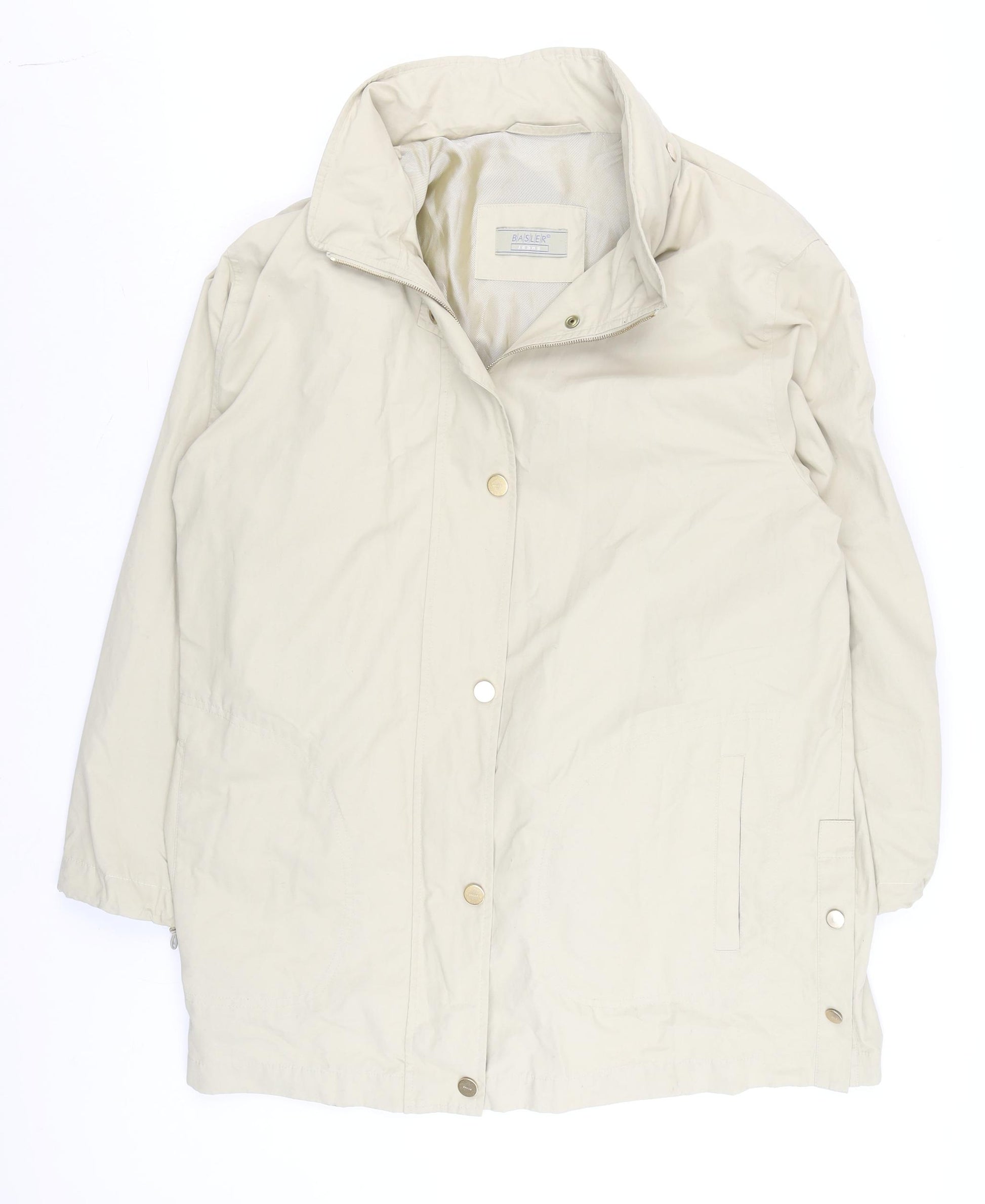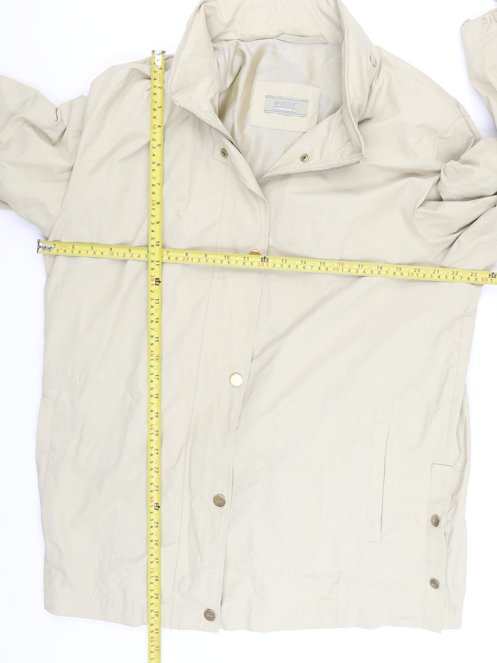 Refresh your outerwear collection with this elegant Basler men’s mid-length coat in a refined beige tone, combining practical features with understated style. Crafted from a quality blend of 59% polyamide, 34% cotton, and 7% polyurethane, this jacket provides a lightweight yet durable outer shell that feels smooth to the touch while maintaining excellent weather-resistant properties. The coat is lined with a soft polyamide and viscose blend to enhance comfort and breathability, making it ideal for transitional seasons such as autumn and spring. Designed with a regular fit, it features a secure zip and button fastening front, convenient side pockets, and a classic stand-up collar that adds sophistication and protection on breezier days. The simple yet timeless design ensures versatility, allowing the coat to pair effortlessly with both smart and casual attire. Whether you’re commuting, travelling, or taking a weekend stroll, this Basler coat offers practicality and style in equal measure. In excellent pre-owned condition with minimal signs of wear and no major flaws visible, it remains a reliable and stylish choice for modern wardrobes. Basler is known for refined tailoring and high-quality materials, and this piece captures that tradition with an understated elegance that transcends seasons. Perfect for those seeking a functional, classic coat suitable for mild to cool weather, this neutral beige colour complements almost any outfit while maintaining a polished, contemporary look.