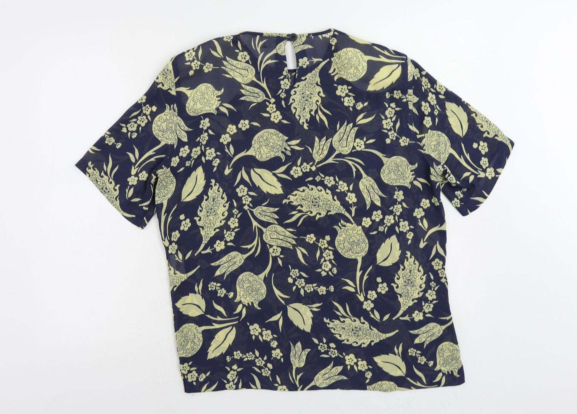 Womens Blue Floral Polyester Basic Blouse Size 12 Round Neck - Sheer