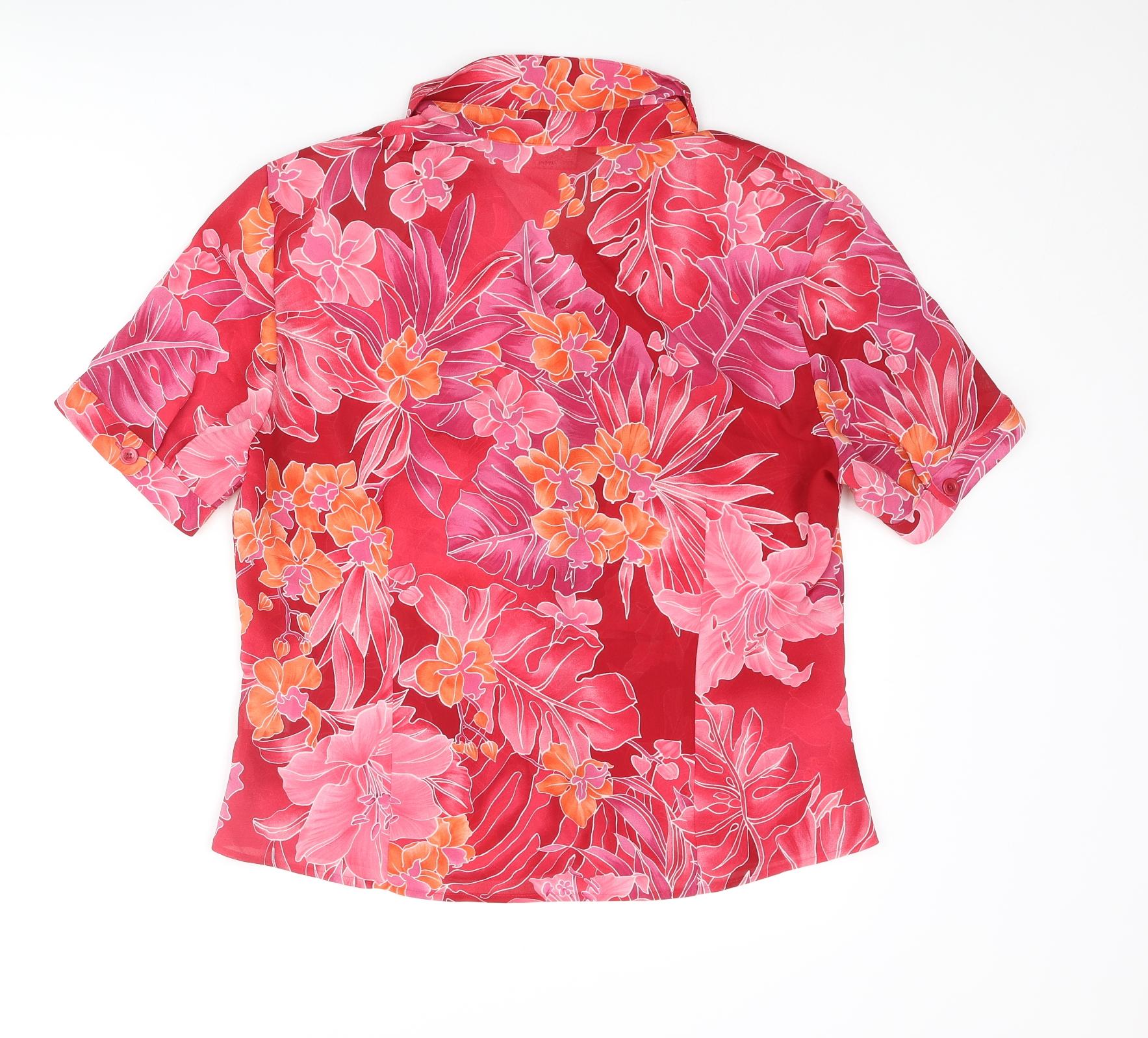 Womens Pink Floral Polyester Basic Blouse Size 12 Collared
