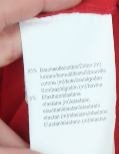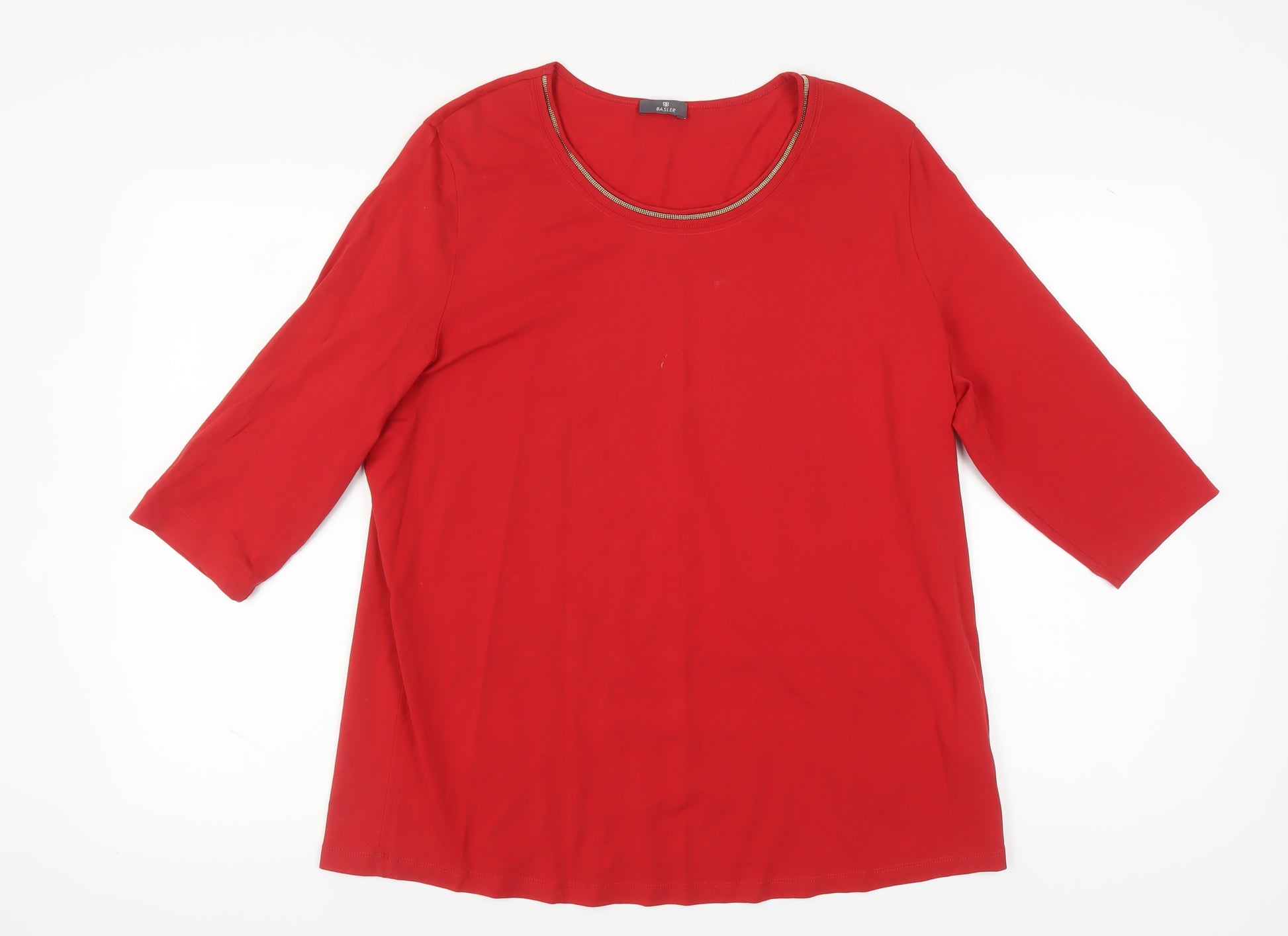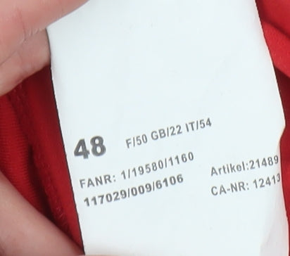 Introducing a timeless piece for your wardrobe: this vibrant red T-shirt from Basler. Crafted for the modern woman, the shirt features a comfortable and flattering round neck design and 3/4 sleeves, making it an ideal addition for any season. The rich cotton blend fabric, comprised of 95% cotton and 5% elastane, ensures a soft feel and flexible fit, perfect for both casual and smart casual occasions. With a versatile regular fit and elegant solid colour, this top is easy to pair with your favourite jeans or trousers, making it a go-to piece for various outings. Though it shows very slight wear, it's in excellent condition, reflecting minimal use. Enhance your outfit effortlessly with the simplicity and style of this Basler T-shirt, designed to offer both comfort and a splash of personality. Available in a generous size 20, it caters to diverse style needs while guaranteeing a relaxed fit. Don't miss out on owning this exquisite piece that seamlessly combines quality with style.