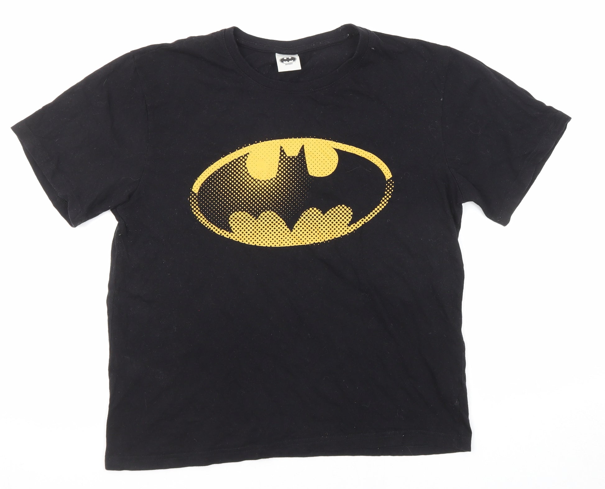 Womens Black Cotton Basic T-Shirt Size M Round Neck