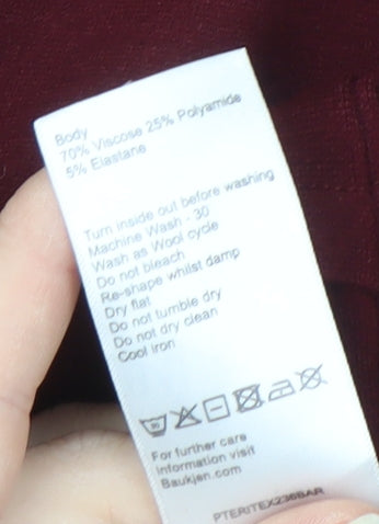 Step into elegance with the stunning Baukjen Women's Sheath Dress. Crafted in a rich red hue, this dress brings a touch of warmth and sophistication to your wardrobe. The half sleeves provide a balanced style, making it ideal for transitional weather while ensuring you remain comfortable and chic. Constructed with quality material, comprising 70% Viscose, 25% Polyamide, and 5% Elastane, the dress ensures a perfect fit that drapes beautifully over your body. The luxurious knit fabric offers a soft touch against your skin, perfect for day-long wear. The round neckline adds a classic touch, providing a sophisticated frame for your choice of accessory, be it an elegant necklace or a stylish scarf. The sheath style is timeless, tailored to enhance your figure with its clean lines and structured form. The zip closure offers a neat fit, making it easy to wear. Designed for the modern woman, this dress is versatile for any occasion – whether it's a casual outing or a semi-formal gathering. Elevate it with statement heels for an evening look or pair with flats for a chic daytime ensemble. Despite being listed as 'excellent' in condition, the garment lacks original tags but maintains its pristine quality with no visible defects, ensuring a buy that's just as good as new. Let this elegant piece become a staple in your collection – its vibrant red shade exuding confidence and grace wherever you go.