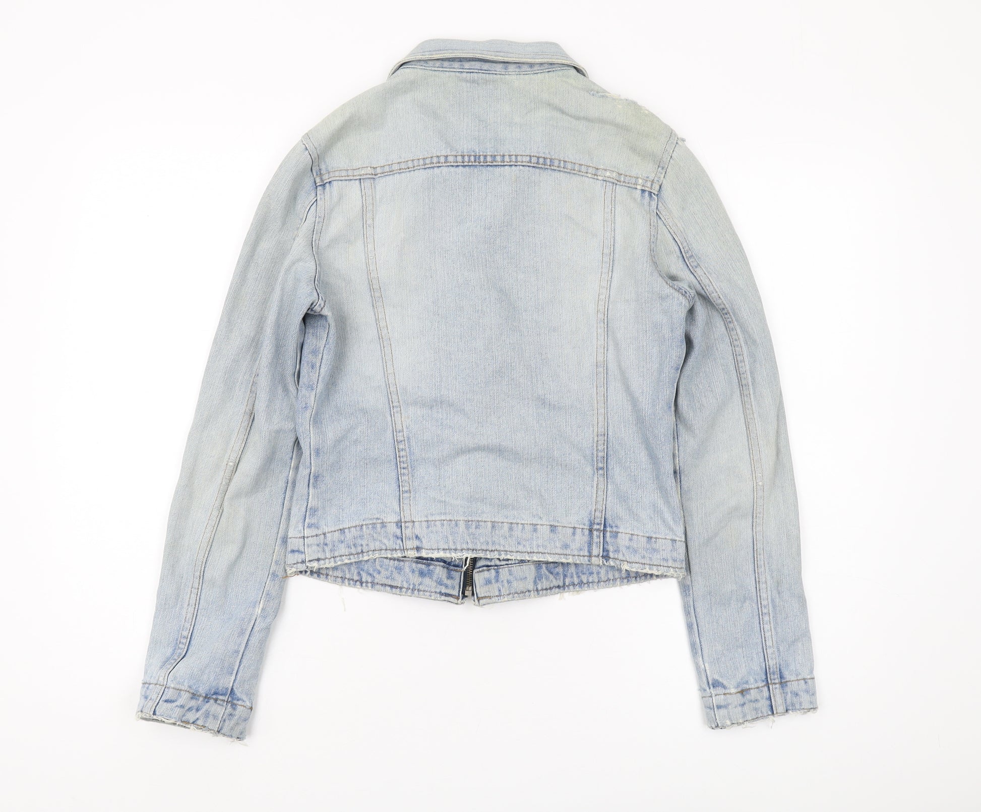 Women's Blue Denim Jacket Size 8 Cropped Zip Casual