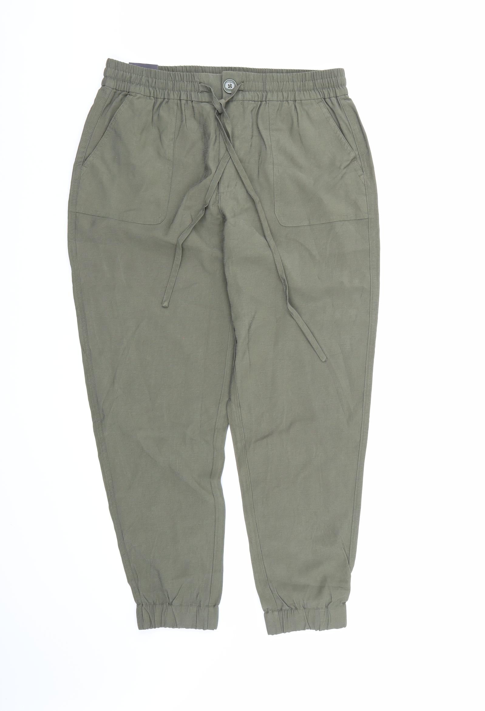 Riviera Women’s Green Linen Cropped Trousers Size 14