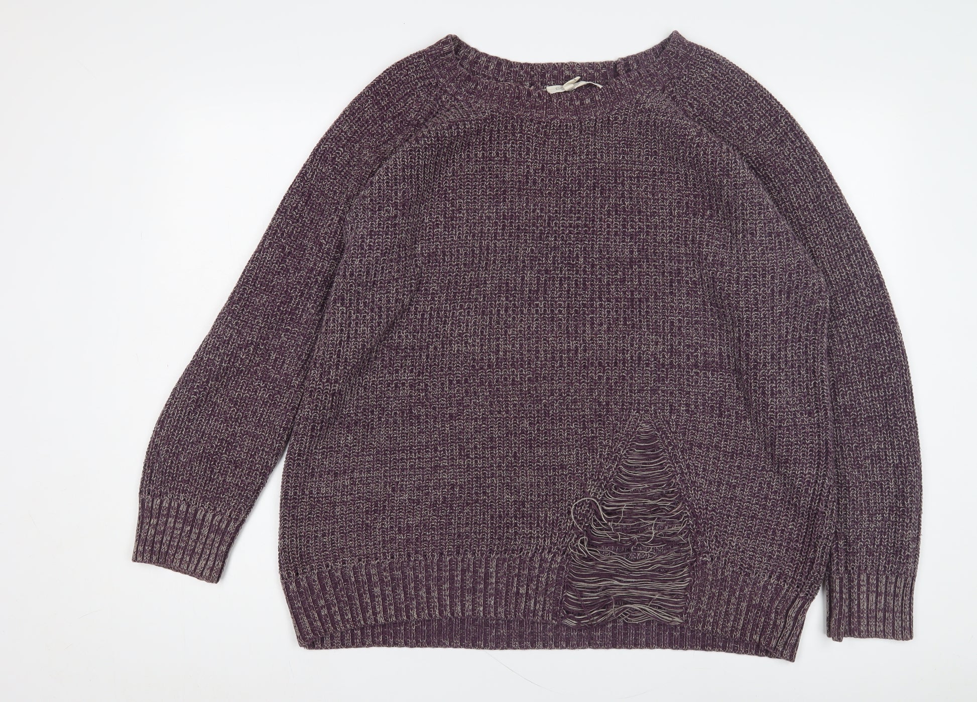Dive into cosy elegance with the BCBGeneration Women's Chunky Knit Jumper, crafted for style and comfort. This relaxed-fit jumper in a striking shade of purple is perfect for autumn and winter, designed to keep you warm while looking fabulous. With its crew neck and raglan sleeves, it offers an effortless style that transitions well from casual days to cosy evenings. The knit fabric combines both quality and comfort, making it an ideal choice for chillier weather. Whether you're lounging at home or heading out for a laid-back day, this jumper promises warmth and relaxed sophistication in every wear. Note a small feature, the playful tear on the front, adding a unique character to this beautiful piece. Reasonably priced for style-conscious budgets, it’s easily paired with your favourite jeans or leggings, making it a versatile addition to any wardrobe.