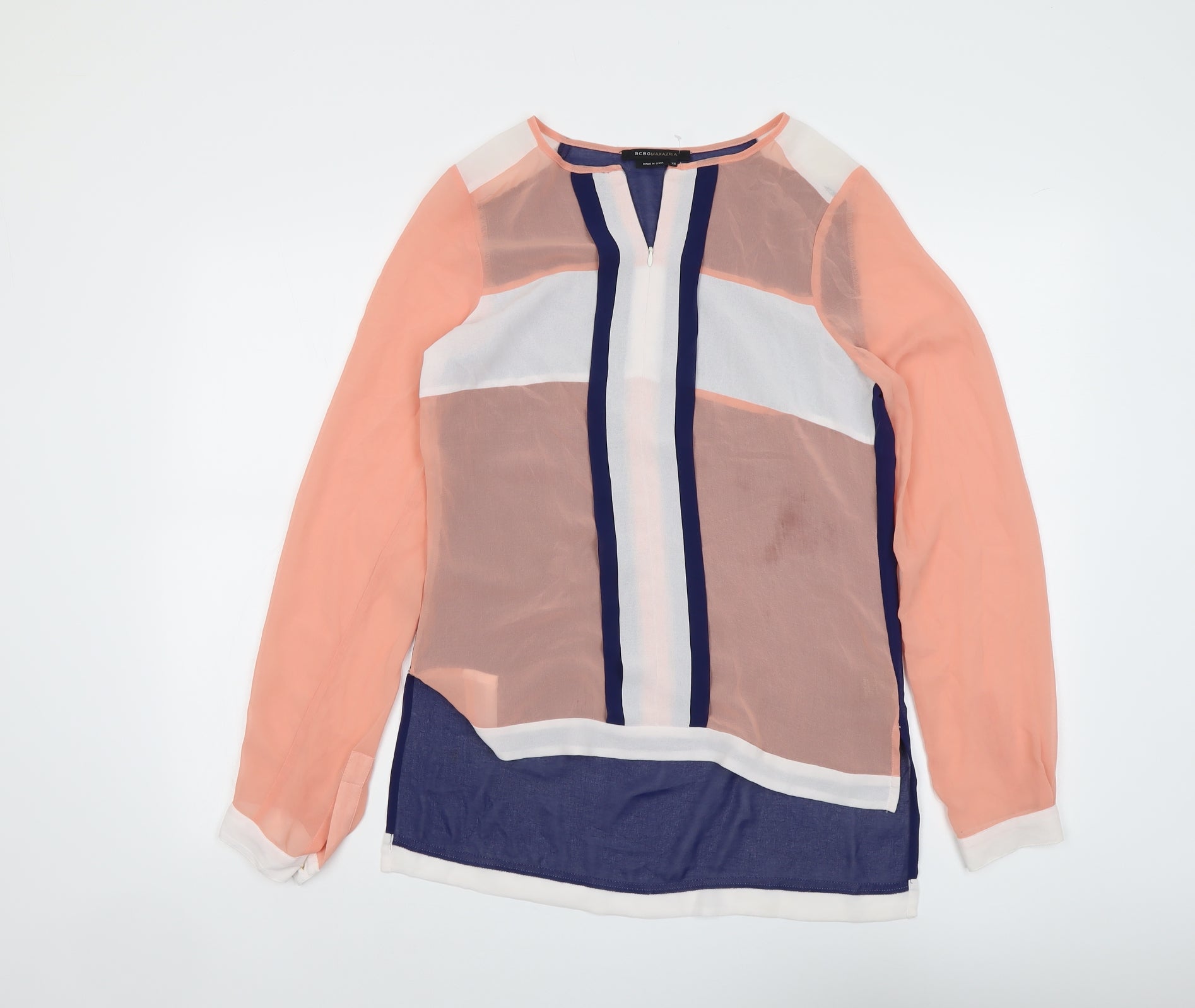 Womens Multicoloured Geometric Polyester Basic Blouse Size XS Round Neck