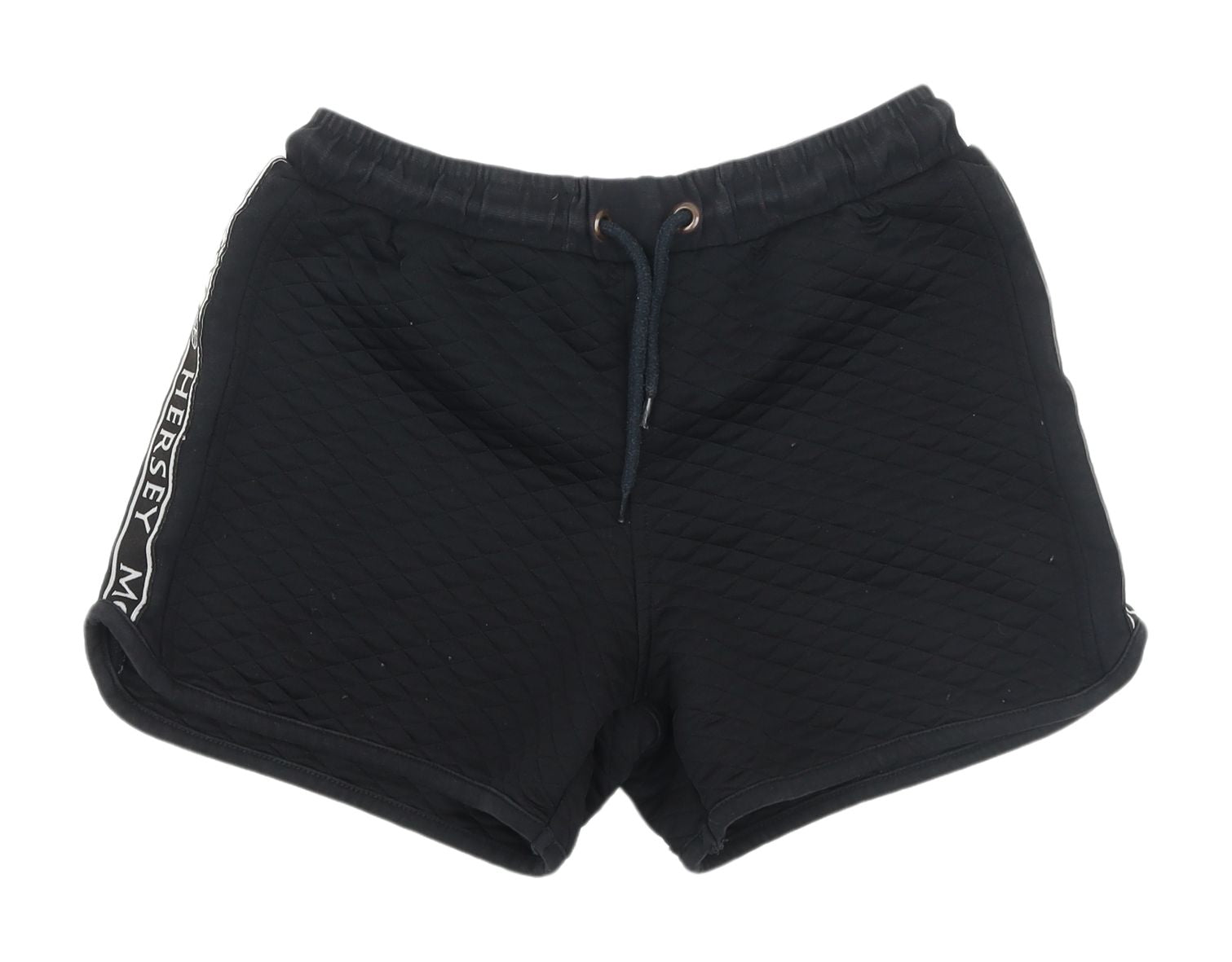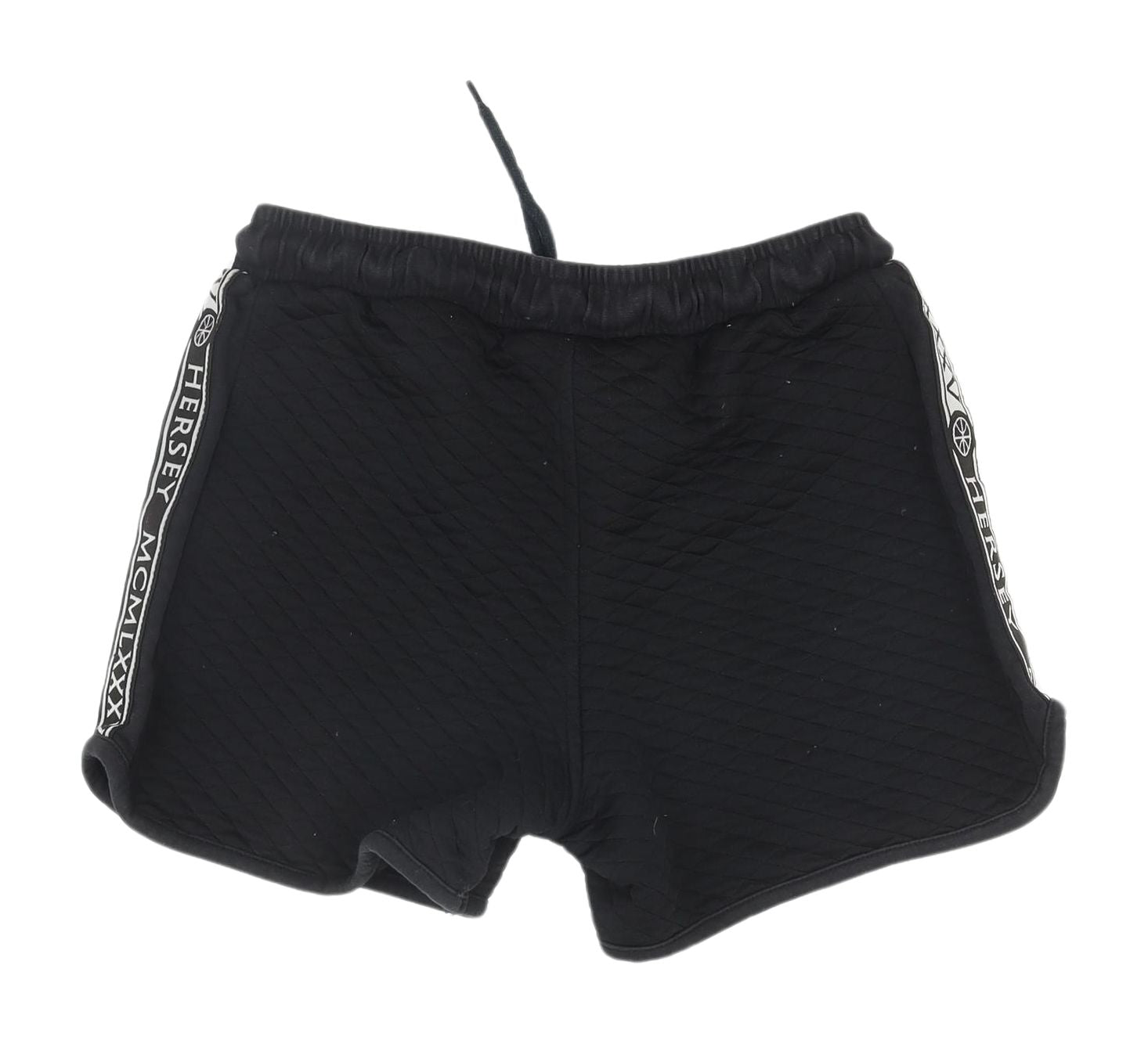 Discover the casual comfort of these BCK & HRSY Women's Black Sweat Shorts, a perfect blend of style and functionality. Designed for women who appreciate easy-to-wear fashion, these shorts are crafted from 100% polyester, ensuring durability and a smooth finish. The regular fit and mid-rise design make them versatile, ideal for spring and summer outings. Featuring a drawstring closure, these shorts provide adjustable comfort and a secure fit. The flat front style and classic knit fabric offer a sleek, streamlined look, complemented by the subtle logo accents on the sides. Perfect for casual occasions, these shorts are a great addition to any wardrobe. Embrace their effortless style, whether you're heading out for a walk, running errands, or simply relaxing at home. With the added convenience of being machine washable, these shorts promise easy care and maintenance. Light wear is visible, but the shorts remain in excellent condition, making them a reliable choice for everyday wear. Expand your fashion choices with these practical, comfortable shorts, designed for those who value both form and function.