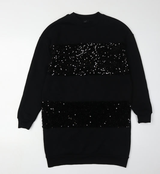 Primark Womens Black Viscose Jumper Dress Size XS V-Neck Pullover
