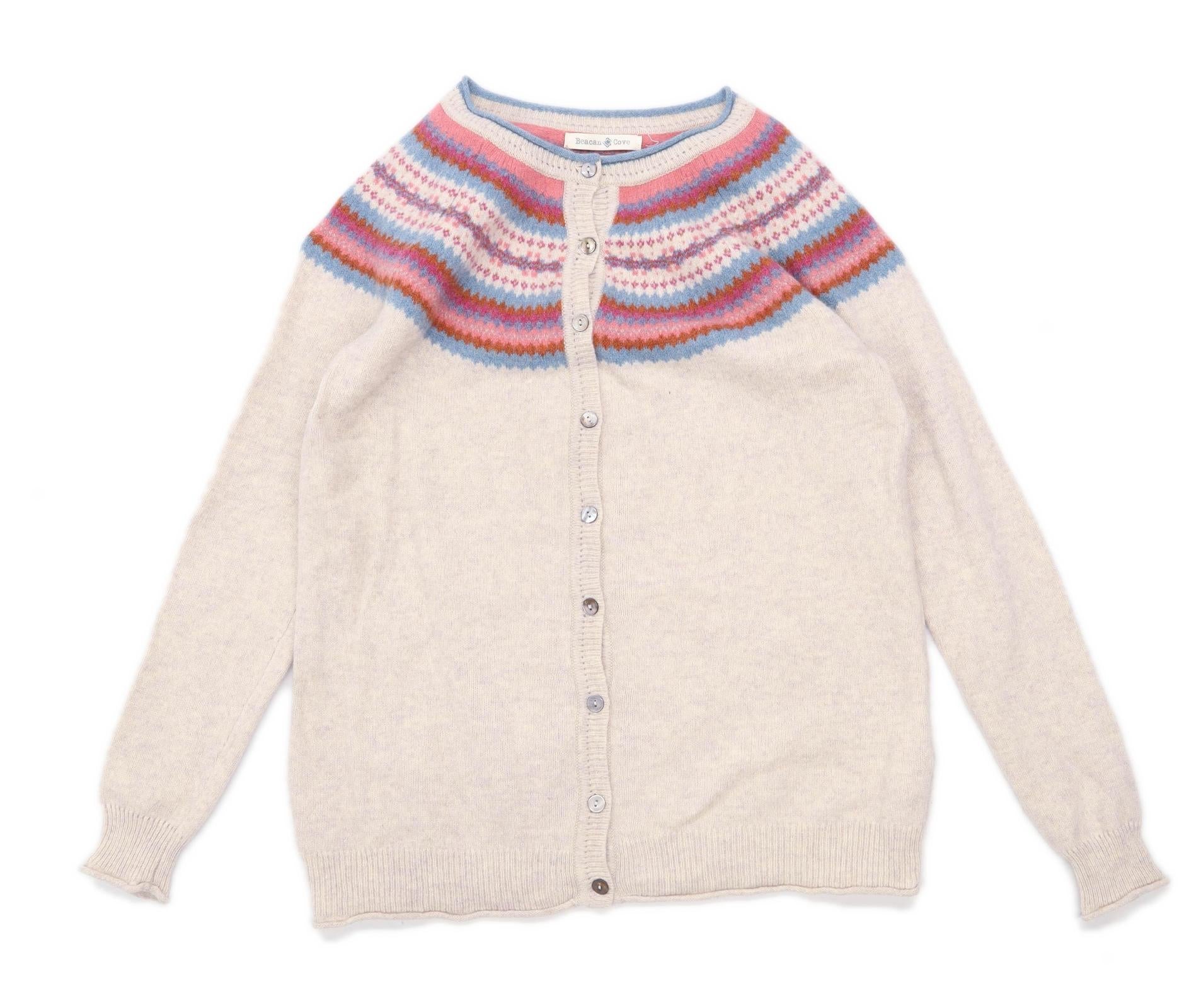 Womens Size 14 Striped Wool Beige Cardigan (Regular)