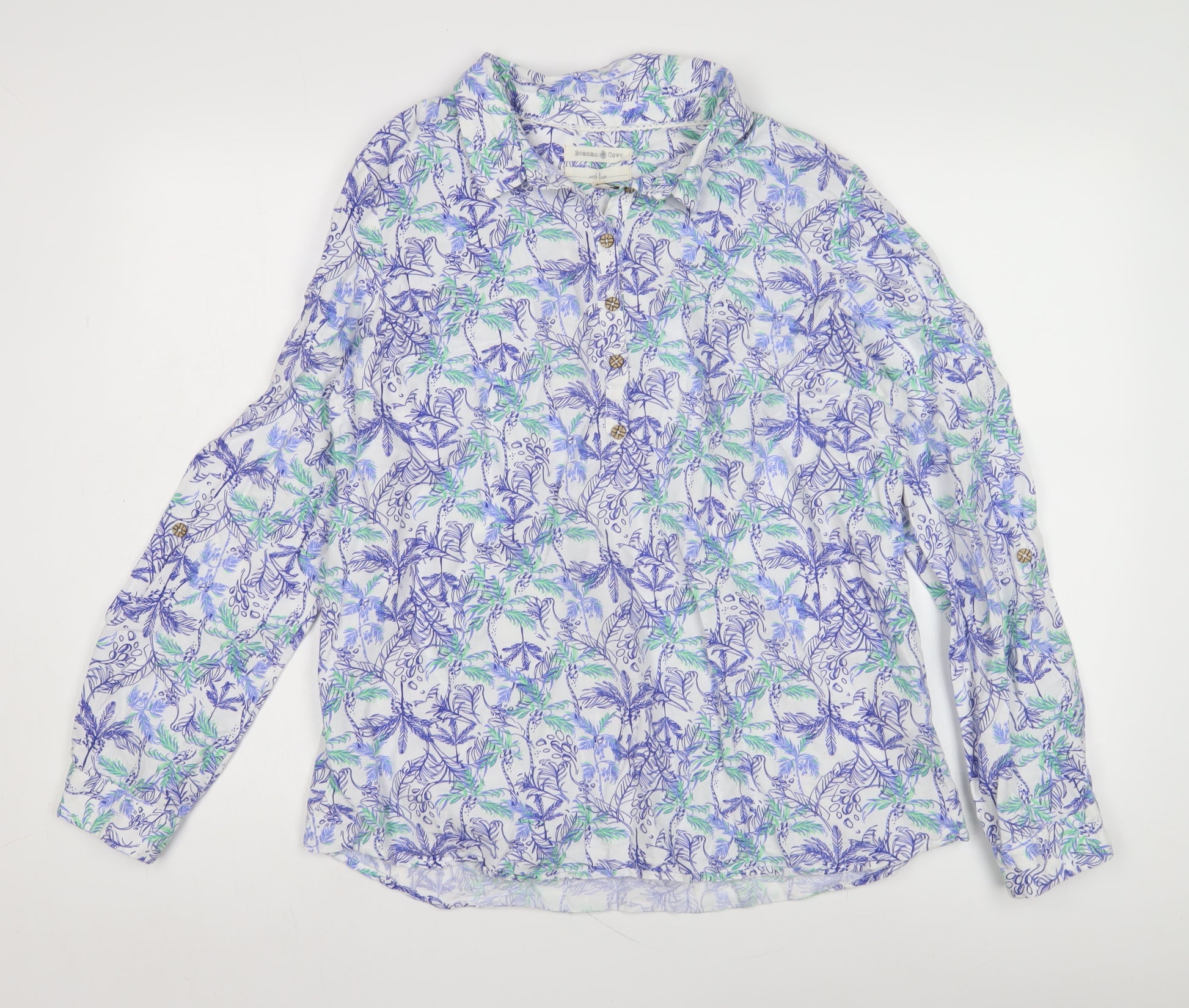 Elevate your warm-weather wardrobe with this vibrant multicoloured floral blouse from Beacon Cove, perfectly designed for women who appreciate comfort and style. Crafted from 100% linen, this blouse is ideal for keeping cool and comfortable during spring and summer outings. It features a classic collared neckline and long, fitted sleeves, offering an effortlessly chic and casual aesthetic. The blouse is adorned with a charming button accent, enhancing its appeal and providing a secure fit. The floral pattern adds a touch of nature-inspired elegance, making it an excellent choice for casual gatherings or a day out in the city. Designed for those who prefer their wardrobe timeless and versatile, this blouse is a perfect match for jeans or skirts. Despite being pre-owned, it remains in excellent condition, free from visible damage or stains, ensuring your satisfaction. Make this stylish and practical addition to your collection today!