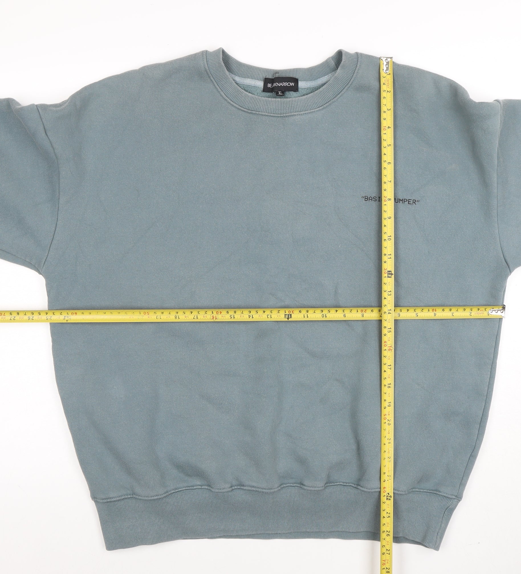 This BEAUXNARROW men's sweatshirt delivers classic comfort with a minimal, modern edge. Crafted in a soft fleece fabric blend of 80% cotton and 20% polyester, it offers warmth and a smooth finish suited for everyday wear. The light blue tone provides a versatile base that pairs effortlessly with jeans, joggers, or chinos, making it ideal for casual styling during the cooler months. Designed with a crew neck and ribbed trims on the cuffs and hem, it ensures a snug but relaxed fit that retains its shape even with regular wear. The distinctive BEAUXNARROW logo sits boldly across the back in a contrasting black graphic print, while the front features a subtle 'Basic Jumper' text detail, providing a touch of understated branding that adds appeal without overwhelming the overall design. With its pullover construction and fleece interior, this sweatshirt offers reliable comfort whether worn for lounging, layering, or streetwear looks. Its machine washable care instructions make it easy to maintain, keeping it fresh for long-term use. Perfect for autumn and winter wear, this sweatshirt combines functionality with a laid-back aesthetic. In excellent used condition, showing only minimal signs of wear and no major flaws, it represents great value for any wardrobe. Ideal for men seeking a modern sweatshirt with timeless styling and all-day comfort. Make this BEAUXNARROW XL crew neck fleece sweatshirt a go-to piece for your casual rotation.