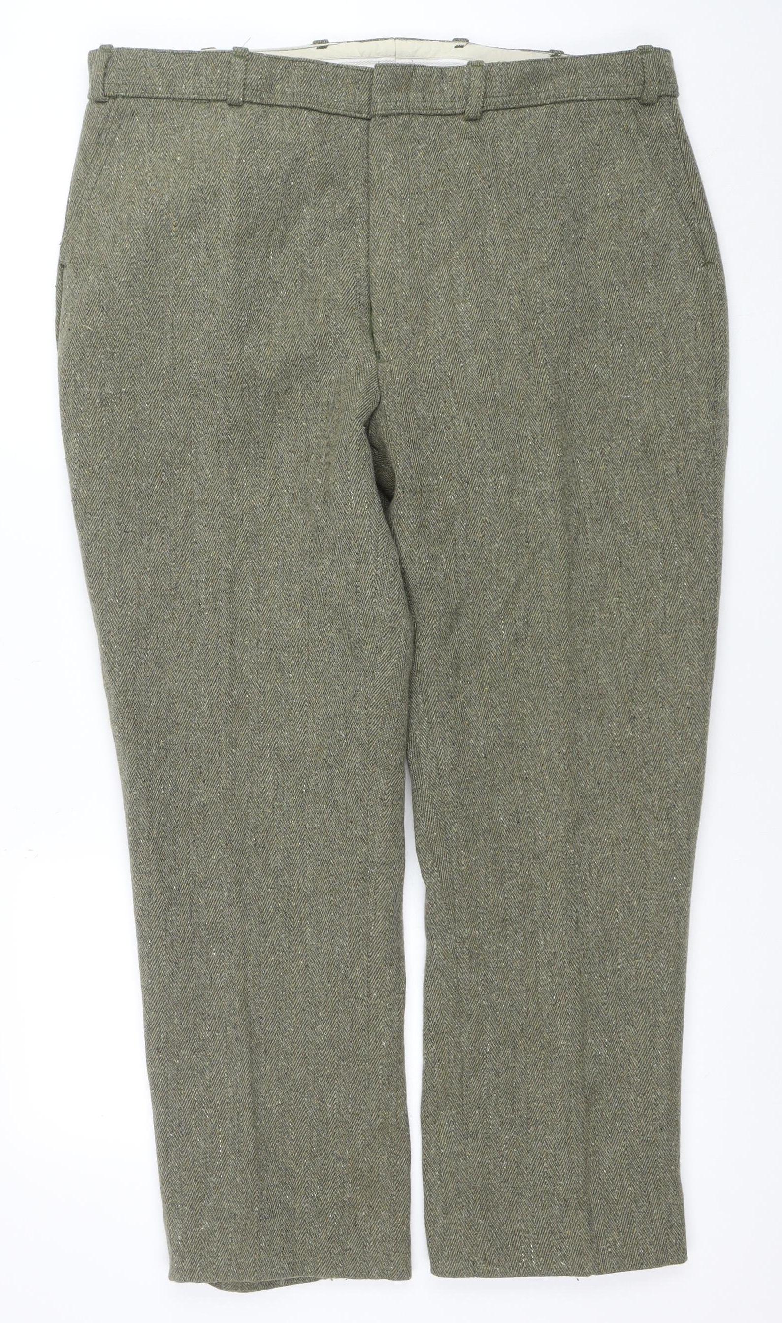 Men’s Grey Herringbone Wool Tweed Trousers Size 40 Regular