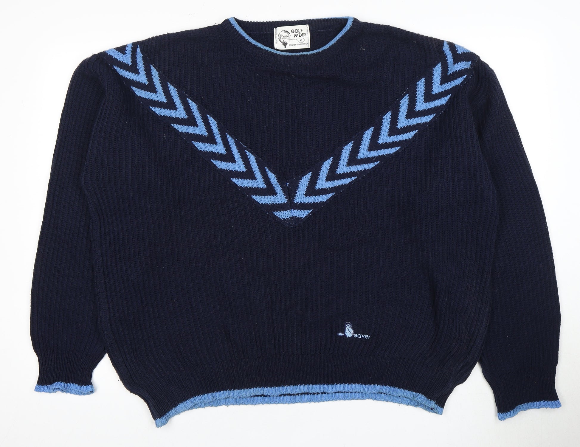 Men's XL Blue Pullover Jumper, Geometric Knit