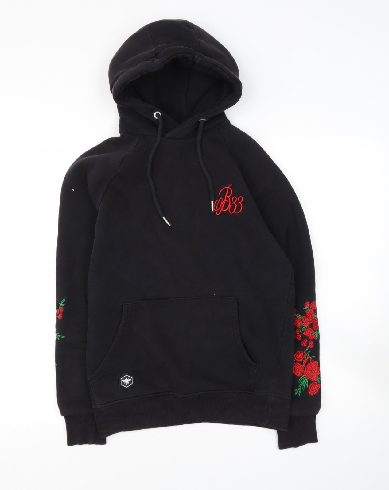 Womens Black Polyester Pullover Hoodie Size XS