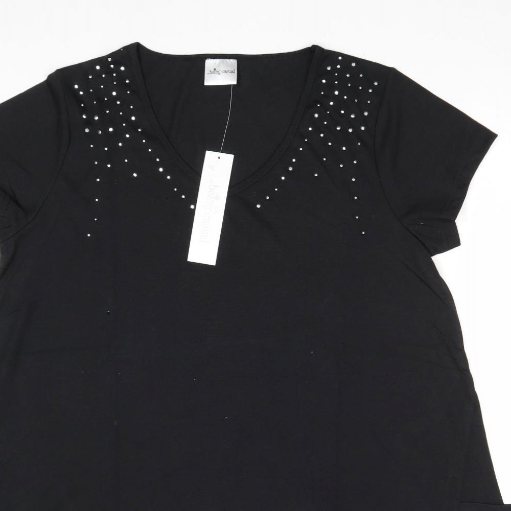 Womens Black Polyester Basic T-Shirt Size 14 V-Neck