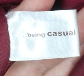 This Being Casual women's duffle coat in a bold red hue offers both timeless style and functional comfort, making it a great choice for cooler seasons. Crafted from a durable blend of 65% polyester and 35% cotton, the coat provides a comfortable and resistant outer layer ideal for everyday wear. It features a warm polyester lining and additional polyester padding that ensures insulation and coziness on chilly days. The hood offers added protection from the elements, while the toggle and button closure give this coat a classic duffle design with a modern appeal. Designed for a regular fit, the mid-length cut offers versatility and ease of movement, perfect for casual outings or daily errands. Two practical front pockets deliver everyday functionality, providing space for small essentials or simply a place to keep your hands warm. The coat is machine washable, ensuring easy care and maintenance without compromising its colour or shape. This piece is ideal for autumn and winter wear, combining practical warmth with effortless style. It’s an excellent choice for layering over jumpers or knitwear, transitioning smoothly from outdoor strolls to city wear. In excellent pre-loved condition with minimal wear, this coat has been well maintained and remains in great shape, showing no stains or tears. With its flattering silhouette and soft yet structured twill fabric texture, this duffle coat is a wardrobe staple that blends comfort, durability, and classic design. Reliable and stylish, this Being Casual coat will add a touch of vibrant charm to your cold-weather collection, offering both versatility and warmth for seasons to come.