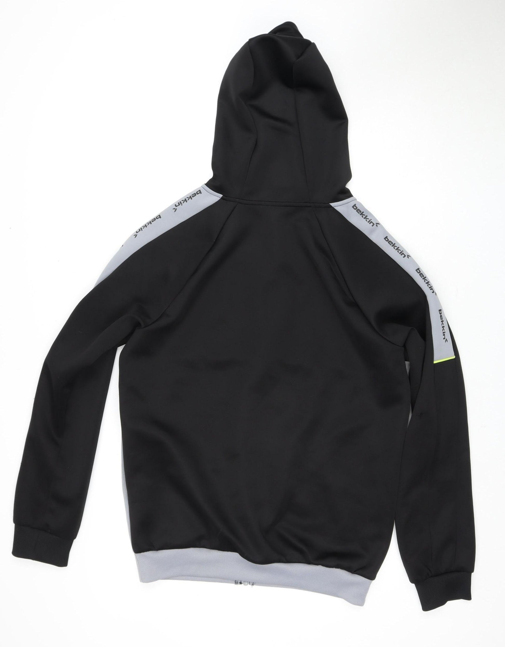 Embrace comfort and style with the Bekkin Men's Black Full Zip Hoodie, a versatile addition to any wardrobe perfect for the colder months. Crafted from a blend of polyester and elastane, this hoodie promises durability and flexibility, making it ideal for both casual outings and lounging at home. Its sleek black design is complemented by a contrasting logo accent, adding a subtle touch of branding without overwhelming the minimalist aesthetic. The full zip closure ensures easy wear, while the hooded neckline provides extra warmth and comfort, shielding you from chilly winds. Ideal for autumn and winter, this versatile piece offers a regular fit, providing enough room to wear a base layer underneath without feeling restricted. Machine washable, it is easy to care for, maintaining its shape and vibrancy wash after wash. Its long sleeves and microfibre fabric make it a practical and stylish choice for any occasion. Though it shows slight marks on the front, its overall excellent condition makes it a fantastic find at a great value. The Bekkin hoodie is the perfect go-to hoodie for the modern man seeking comfort, style, and value. Ideal for casual outings, daily wear, or relaxing at home, this hoodie effortlessly matches with jeans or joggers, ensuring you maintain a fashionable appearance. Whether you're heading out for a day of errands or catching up with friends, this hoodie suits a variety of scenarios, making it an essential piece for any wardrobe. Maximise your style potential with this easy-to-wear, easy-to-pair hoodie, designed to keep you comfortable and looking fantastic this season.