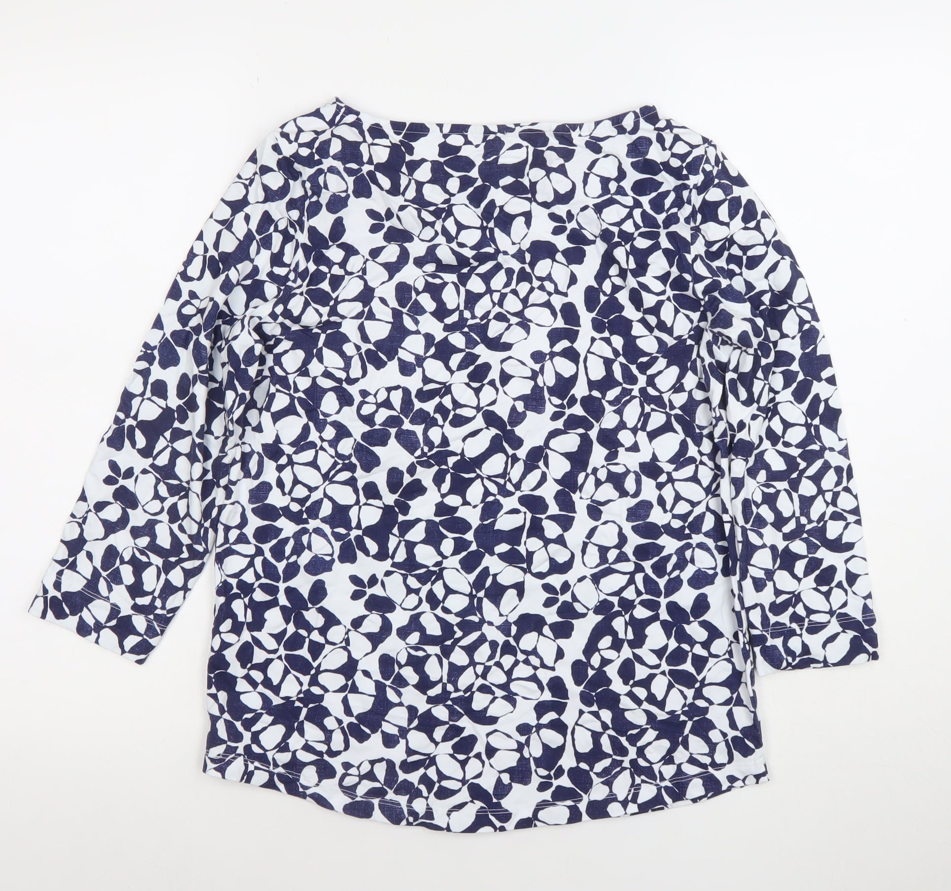 Women's Blue Floral 3/4 Sleeve Cotton T-Shirt Size 12