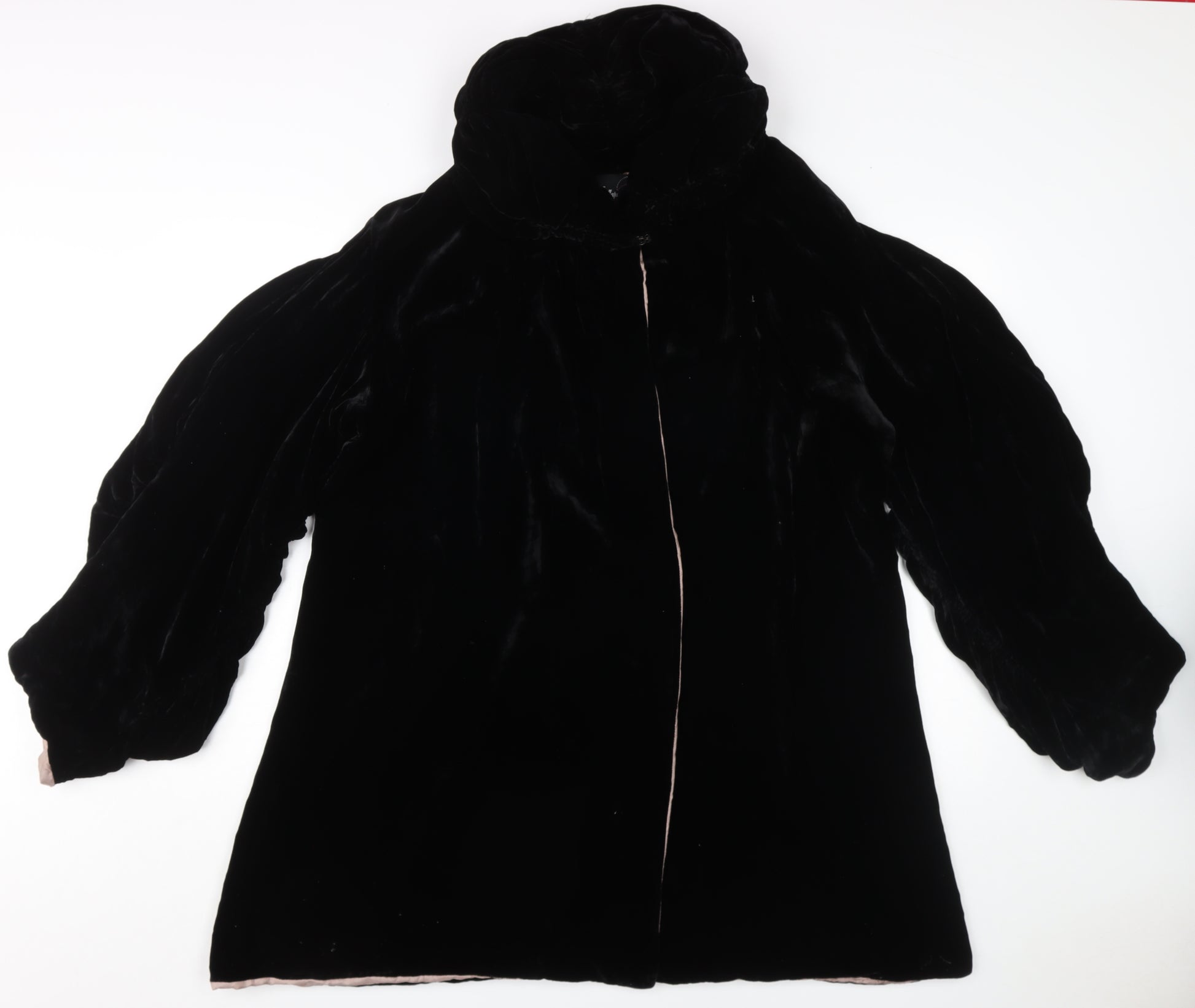Explore elegance with this Bellaju for the V&A women's coat, crafted from luxurious 100% silk. This stunning black velvet coat is handmade and features exquisite embroidery on the back, adding a touch of sophistication to any formal or party occasion. Its mid-length design and long sleeves make it perfect for autumn and winter outings. The coat also has a convenient zip closure for easy wear. Despite being gently used, it remains in excellent condition, showcasing no signs of damage. Ideal for women seeking a chic, formal look, this coat marries comfort with style effortlessly. Elevate your wardrobe with this timeless piece, perfect for those special evenings out.