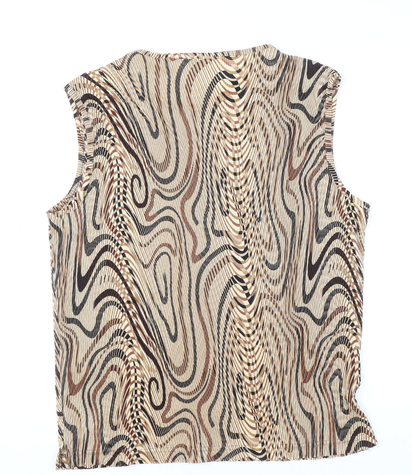Women’s Beige Geometric Sleeveless Blouse Size L