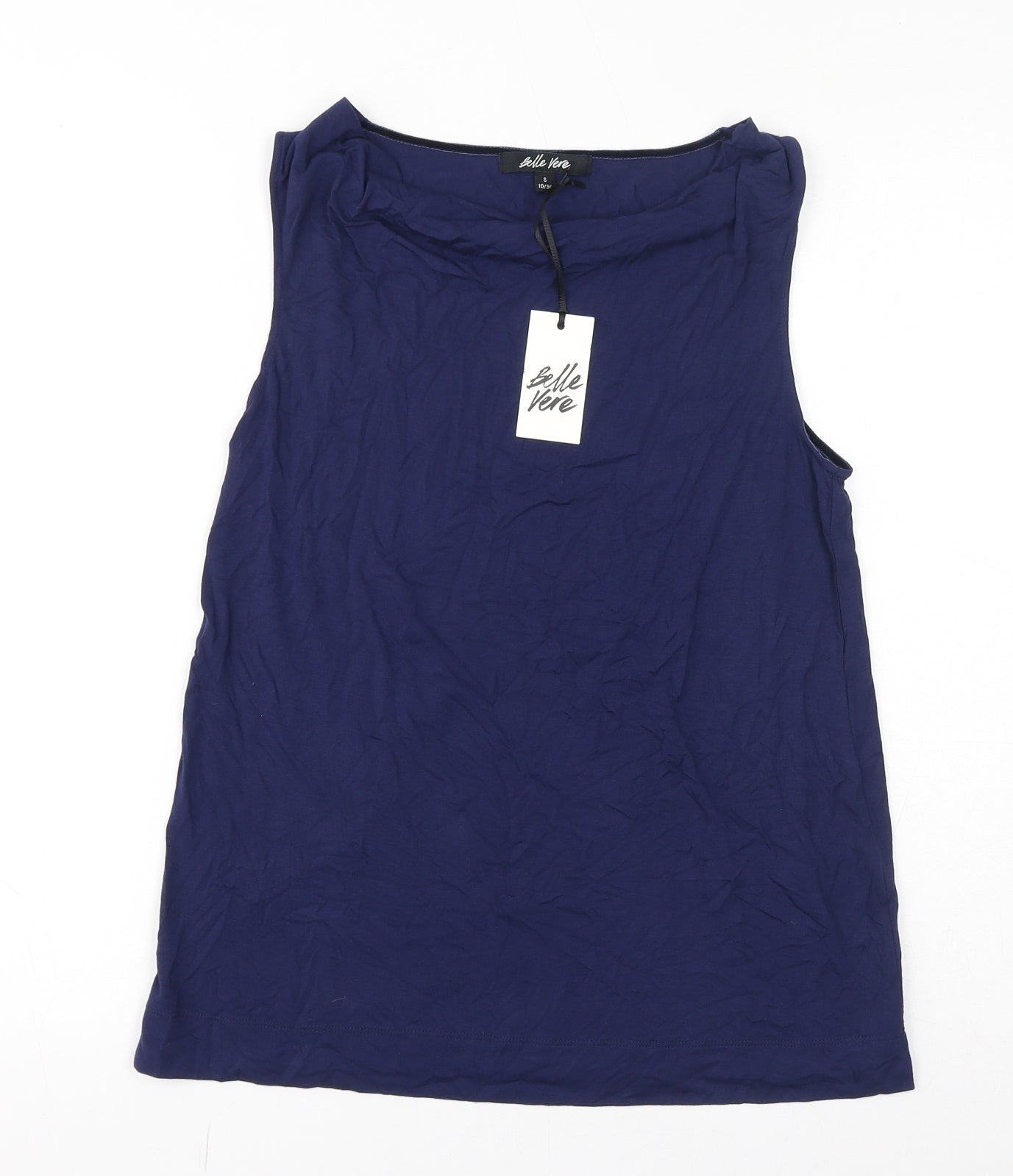 Womens Blue Viscose Basic Tank Size 10 Cowl Neck