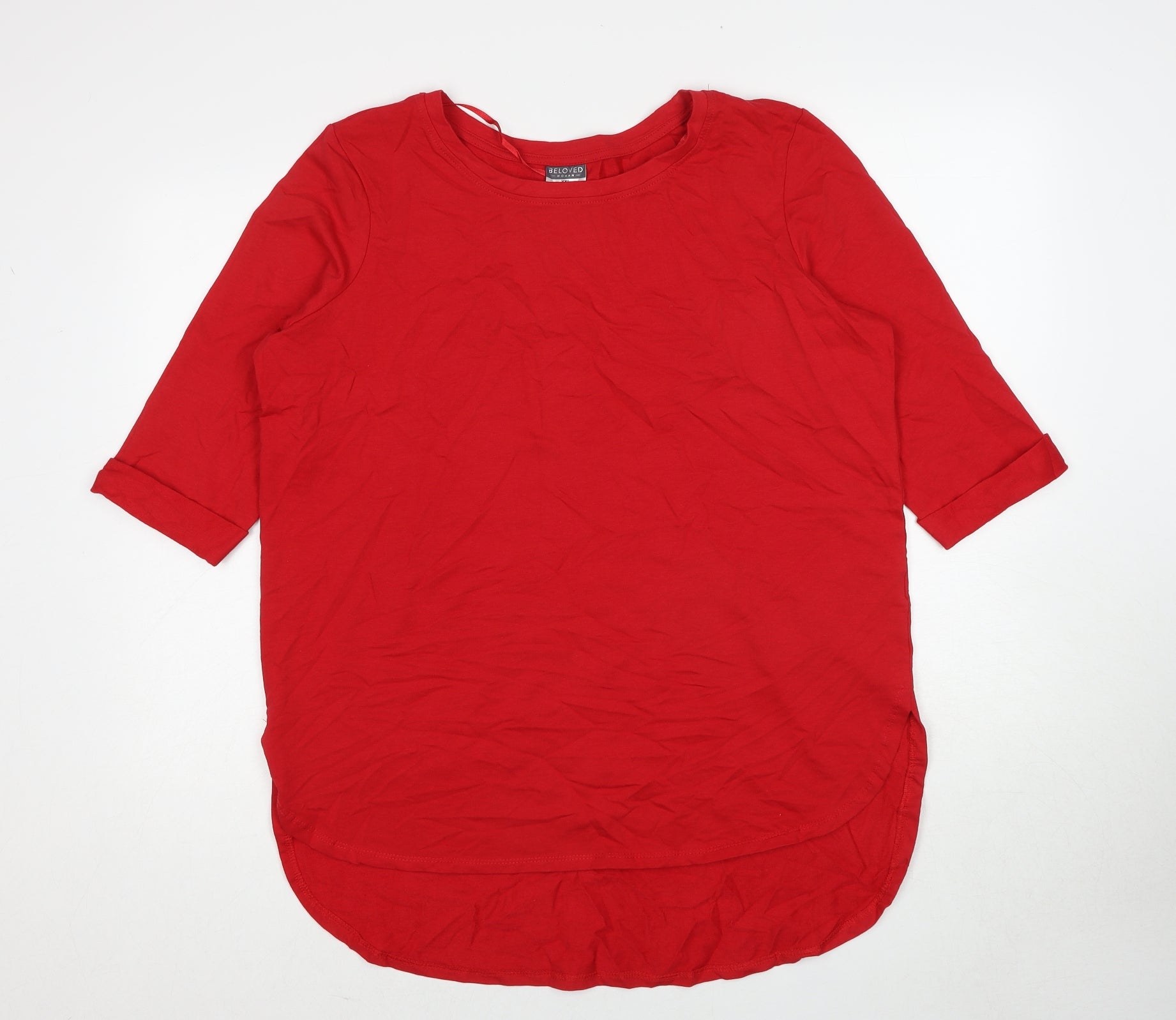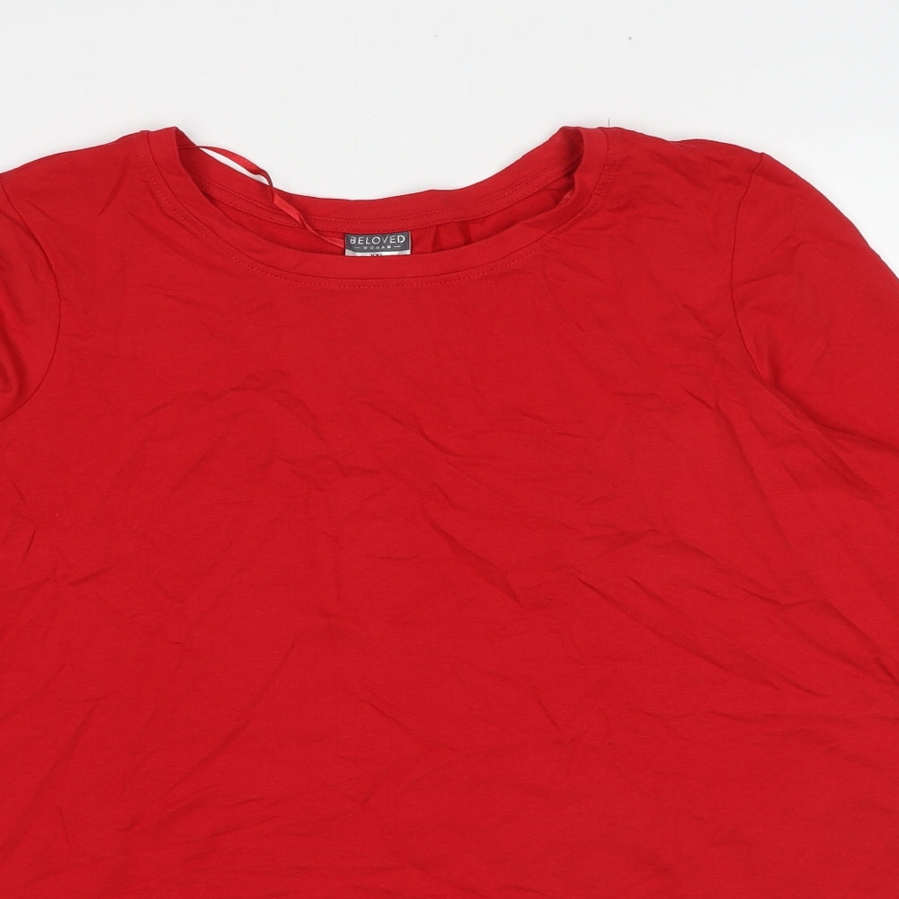 Womens Red Cotton Basic T-Shirt Size 2XL Round Neck