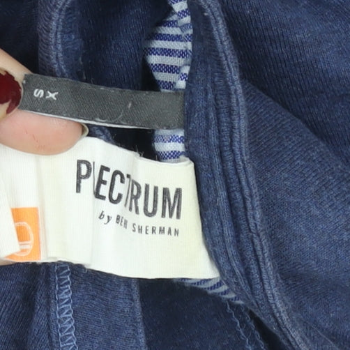 Elevate your casual wardrobe with this smart and stylish Ben Sherman men’s polo shirt from the Plectrum range. Crafted from 100% soft cotton, it offers a breathable and lightweight feel perfect for everyday wear. Presented in a deep blue shade, this polo exudes timeless style and pairs effortlessly with jeans, chinos, or shorts for a refined yet relaxed look. The shirt features a short sleeve design with a Henley-style neckline and a three-button placket, providing a comfortable and versatile fit that easily transitions from laid-back weekends to smart-casual outings.Made from high-quality cotton jersey fabric, this top ensures comfort and durability whilst maintaining an effortlessly sleek appearance. The band collar style gives it a contemporary twist on the traditional polo look, adding understated sophistication. The stitching details and contrasting inner collar trim highlight attention to detail typical of Ben Sherman’s craftsmanship.Ideal for spring and summer wear, this versatile piece functions beautifully as part of a smart-casual outfit. Whether you’re heading to a relaxed social event, a casual office day, or a weekend gathering, this blue short sleeve polo will keep you looking sharp yet comfortable. The fabric wash gives it a darker tone, offering a touch of depth and character to a classic wardrobe staple.In very good pre-owned condition, this shirt shows only light creasing and minimal wear, with no significant flaws or stains. Perfect for fans of British casual style, it’s an affordable and stylish way to add a touch of Ben Sherman’s heritage design to your rotation. Pair it with chinos or dark denim for an effortlessly cool and contemporary aesthetic that works in any setting.
