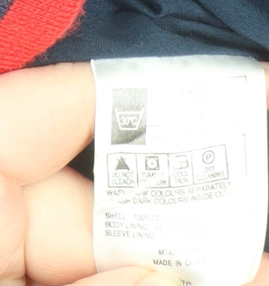 Capture timeless British style with this Ben Sherman men's bomber jacket, designed for effortless casual wear with a touch of mod-inspired flair. Crafted from 100% cotton, this lightweight yet durable jacket offers a comfortable and breathable fit, ideal for transitioning between spring and autumn. The classic navy blue colour is complemented by bold red and white striped ribbed cuffs, collar, and hem, giving it a distinctive varsity-inspired look. The zip-through front, along with two functional zipped pockets, ensures a practical yet stylish finish that fits perfectly into everyday wardrobes. The fully lined interior provides added comfort, while the stand-up collar enhances its classic bomber silhouette. The subtle embroidered Ben Sherman logo adds a refined branded accent, reflecting the label’s commitment to quality and attention to detail. Designed for men who appreciate heritage style and versatile wear, this piece pairs easily with jeans or chinos for a polished casual look. Whether you're heading out for a weekend stroll, unwinding after work, or going for a laid-back meet-up, this Ben Sherman jacket promises style and comfort in equal measure. Machine washable for easy care, it’s a practical choice for modern living. In excellent condition with light signs of wear, this jacket remains in great shape with no visible damage or stains. Its reliability, vintage-inspired ribbed detailing, and timeless blue hue make it an essential addition to the wardrobe of any man who values classic, effortless fashion. Ideal for those cooler evenings, it strikes the perfect balance between contemporary design and retro charm—another testament to Ben Sherman’s iconic British tailoring heritage.